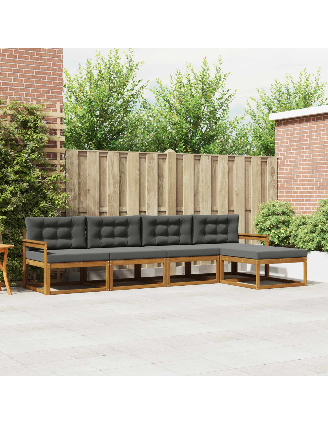 Questo set di divani modulari è l’aggiunta perfetta per il tuo giardino, patio o spazio esterno. Con un look moderno e linee pulite, si adatta a vari contesti. Il caldo colore marrone del legno di acacia crea un’atmosfera accogliente, perfetta per rilassarsi. Essendo modulare, puoi facilmente cambiare la configurazione in base alle tue necessità, che sia per incontri familiari stretti o feste più grandi.