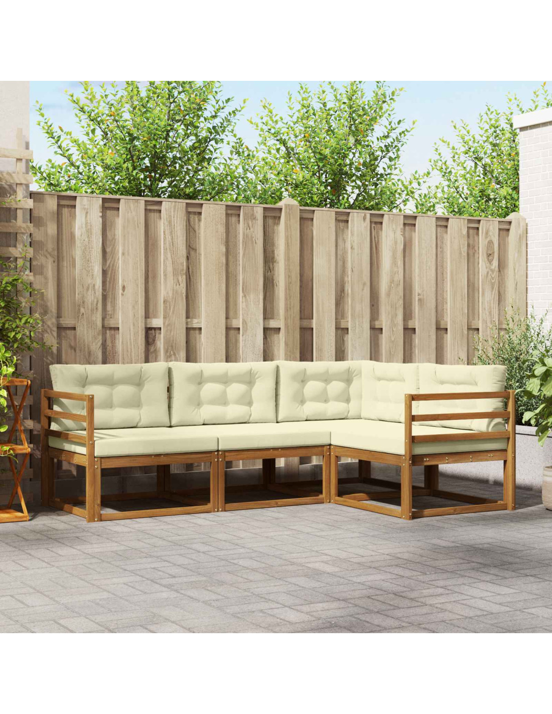 - Legno Massello di Acacia Durevole: Tutti i divani sono fatti di legno massello di acacia, famoso per la sua forza e resistenza agli agenti atmosferici. Con la sua tonalità marrone, non solo aggiunge calore, ma è anche progettato per durare, dandoti tranquillità per i tuoi mobili da esterno.