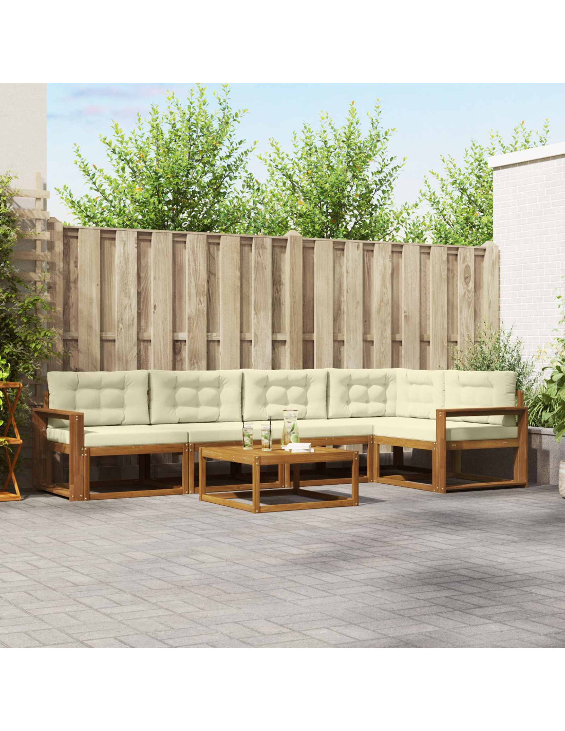 - Resistenza del materiale: Questo set di divani da esterno è fatto in legno massello di acacia, conosciuto per la sua robustezza e il suo aspetto classico. La finitura naturale di acacia offre bellezza duratura e una soluzione di seduta resistente, perfetta per vari ambienti esterni. Questa scelta di materiale dimostra l'impegno per la durata e la sostenibilità.