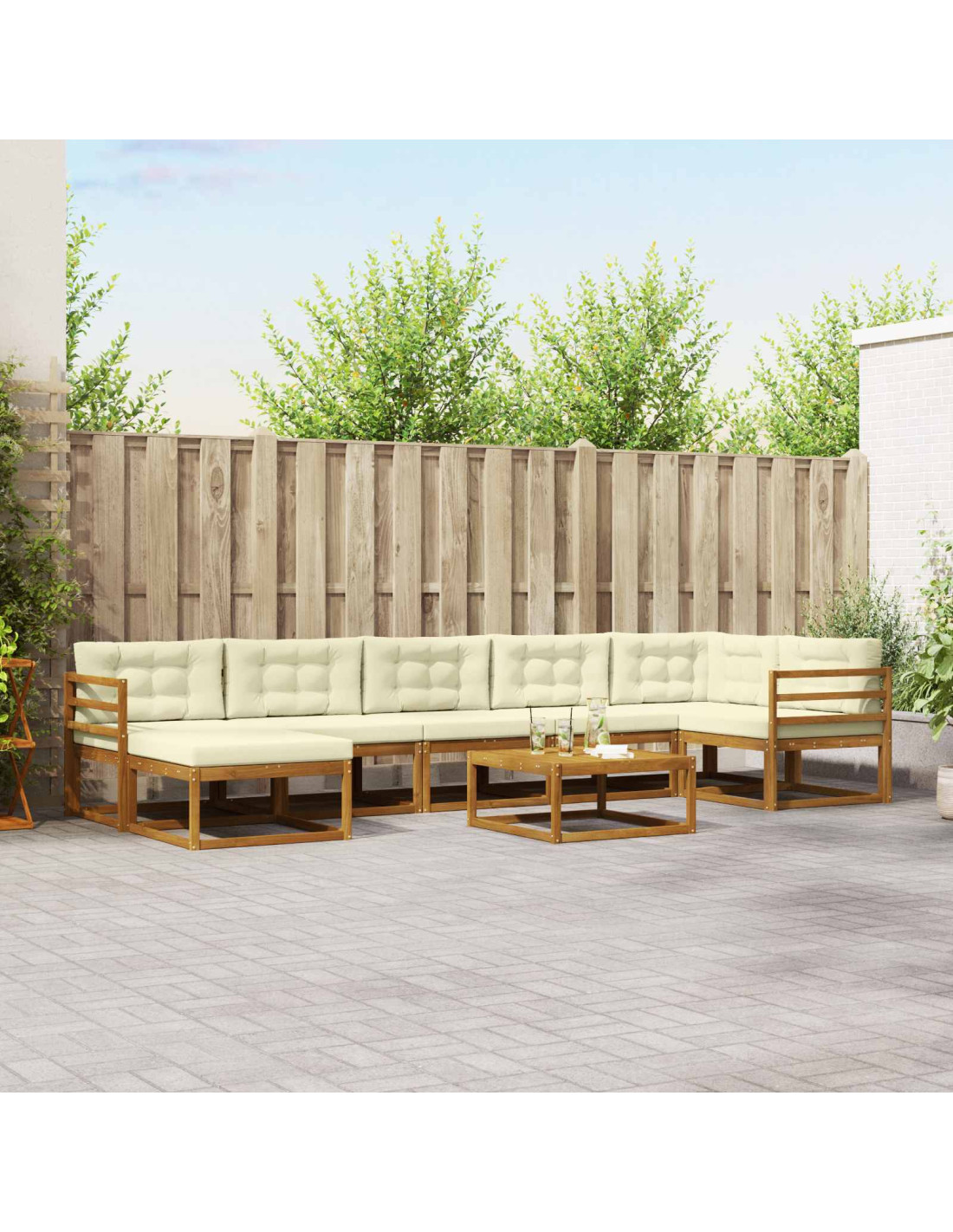 Questo set di divani modulari per esterni unisce perfettamente design moderno e praticità, ed è ideale per giardini, patii e piscine. Le linee pulite si adattano a qualsiasi ambiente, offrendo una sensazione di comfort e relax.