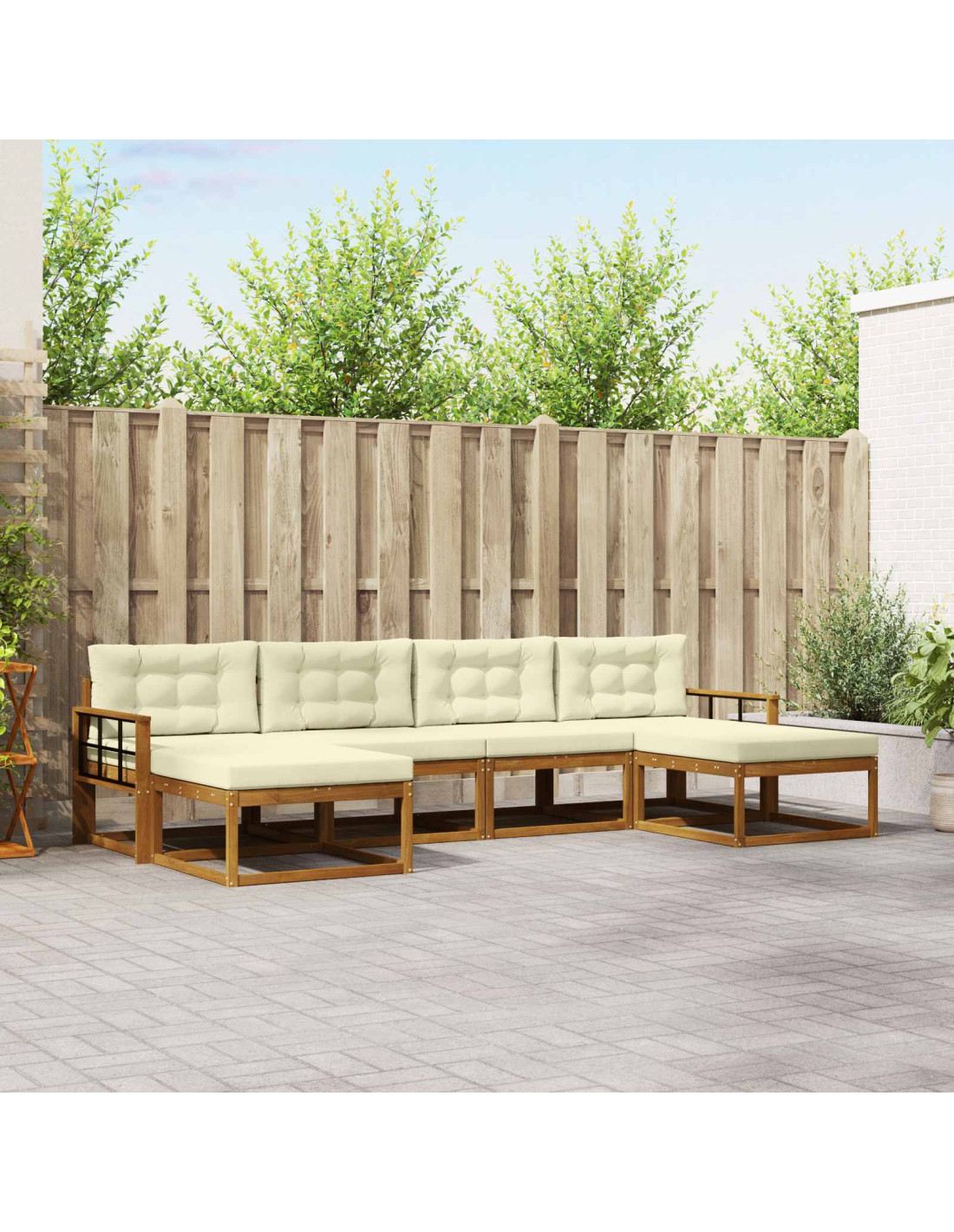 - Legno Massello di Acacia: Questo robusto set di divani è realizzato in legno massello di acacia, resistente agli agenti atmosferici e perfetto per l'outdoor. La bellezza del legno combina resistenza e stile, assicurando durabilità in giardini, patii o accanto alla piscina.