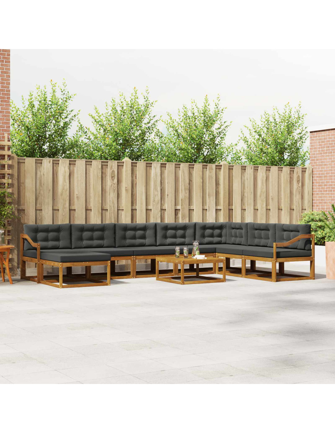 - Legno Di Acacia Durevole: Realizzato in legno massello di acacia di alta qualità, questo divano è pensato per durare. Il legno di acacia è noto per la sua resistenza, rendendolo perfetto per mobili da esterno. La sua struttura robusta offre stabilità senza sacrificare lo stile, mantenendo l'aspetto elegante nel tempo.