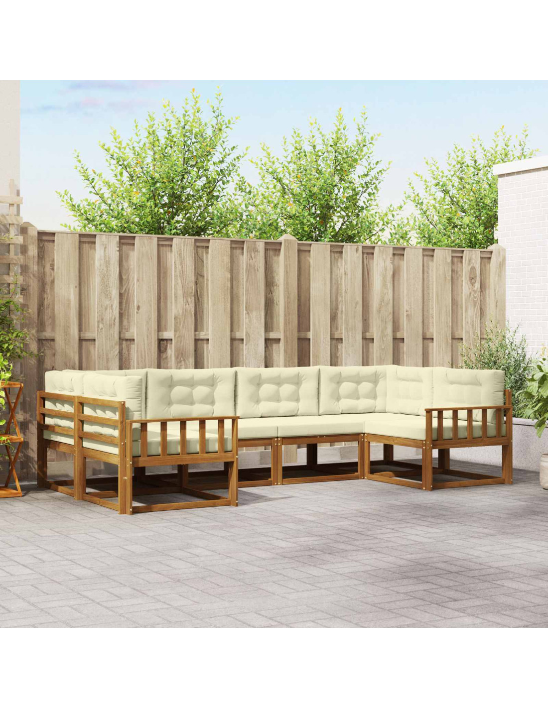 Questo set di divani modulari è moderno e funzionale, ideale per aggiungere un tocco speciale a giardini, patii, cortili o aree a bordo piscina. La struttura in legno massello di acacia e il design a doghe invitano al relax. Le linee semplici e il look minimalista fanno sì che si integri perfettamente in qualsiasi spazio esterno, offrendo una disposizione elegante e comoda per socializzare o godersi momenti di relax.