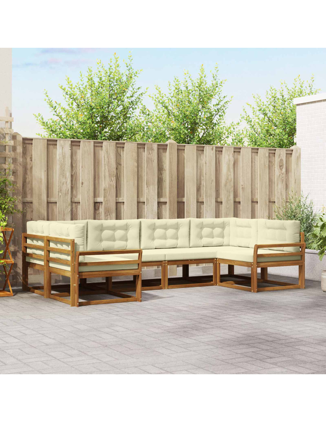 Questo set di divani modulari è moderno e funzionale, ideale per aggiungere un tocco speciale a giardini, patii, cortili o aree a bordo piscina. La struttura in legno massello di acacia e il design a doghe invitano al relax. Le linee semplici e il look minimalista fanno sì che si integri perfettamente in qualsiasi spazio esterno, offrendo una disposizione elegante e comoda per socializzare o godersi momenti di relax.