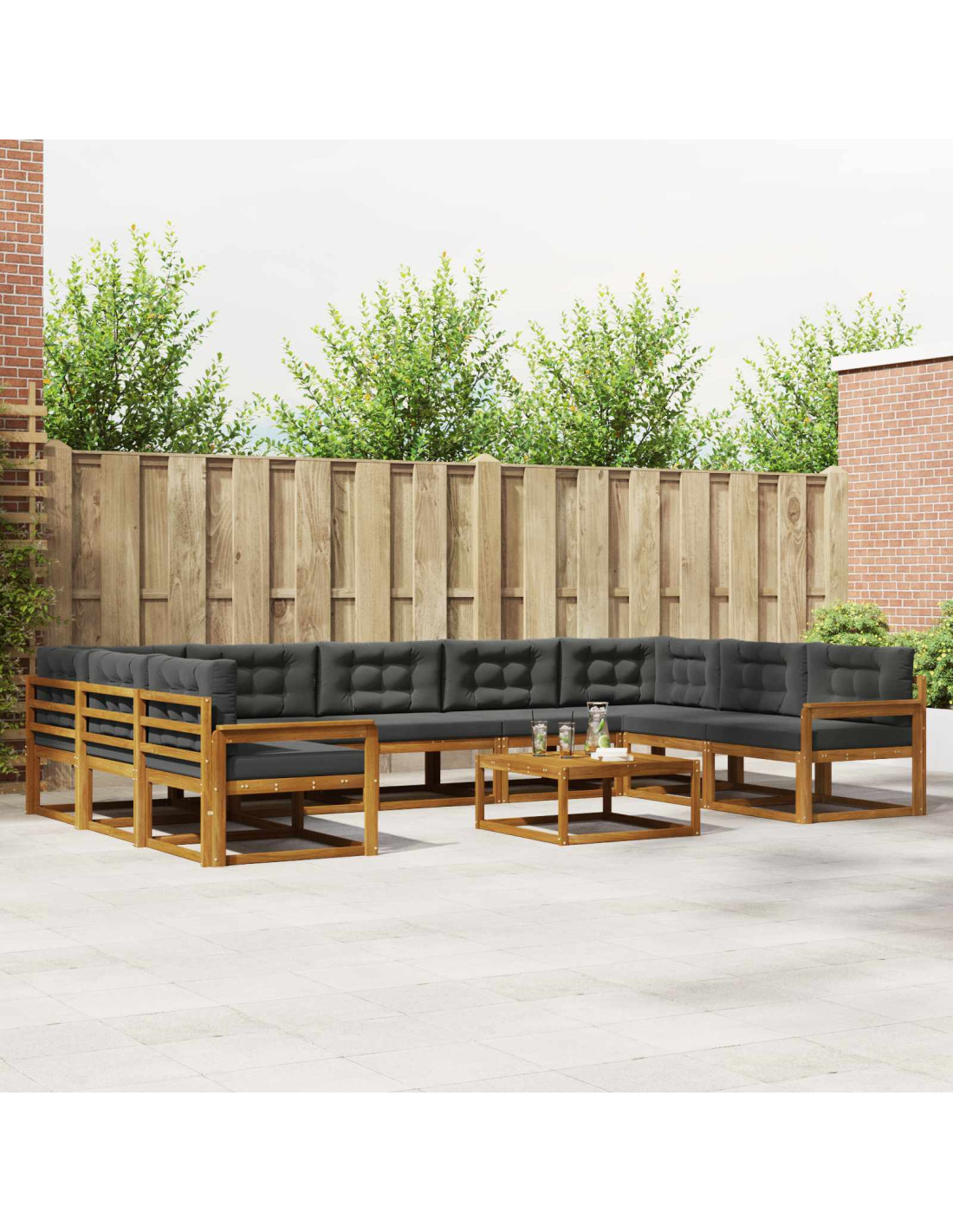 - Costruzione in legno massello di acacia Questo set di divani è realizzato in legno massello di acacia, un materiale noto per la sua durata e resistenza agli agenti atmosferici. È una scelta top per i mobili da esterno grazie alla sua robustezza e bellezza naturale, che arricchisce l’aspetto generale dei tuoi spazi esterni.