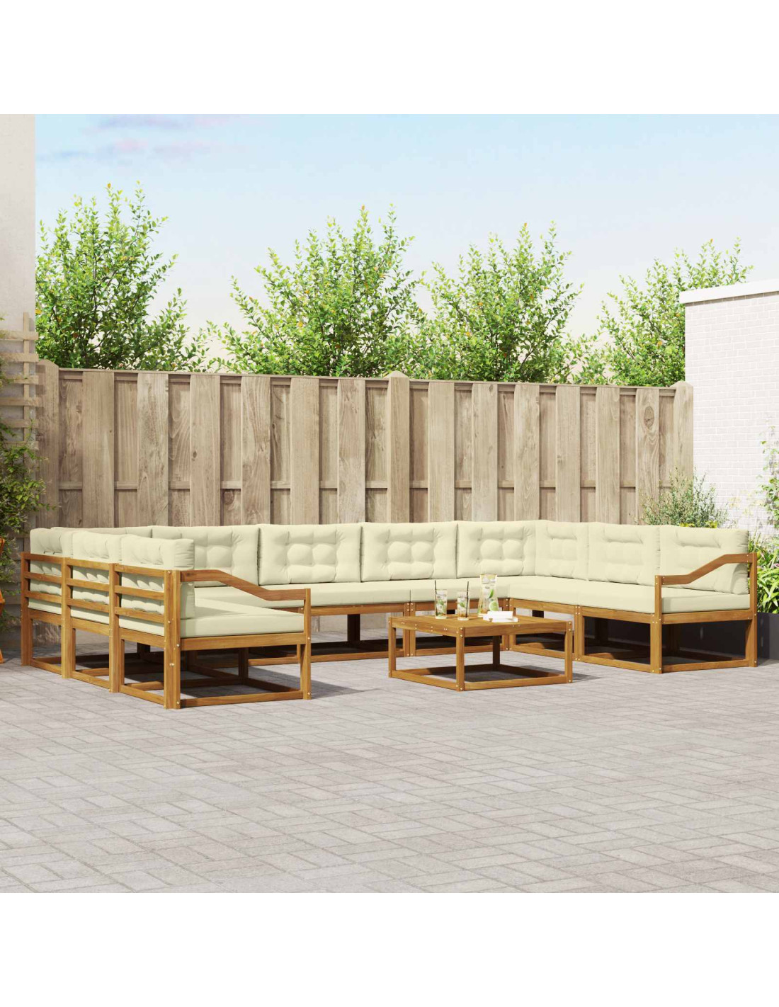 - Costruzione in legno massello di acacia Questo set di divani è realizzato in legno massello di acacia, un materiale noto per la sua durata e resistenza agli agenti atmosferici. È una scelta top per i mobili da esterno grazie alla sua robustezza e bellezza naturale, che arricchisce l’aspetto generale dei tuoi spazi esterni.