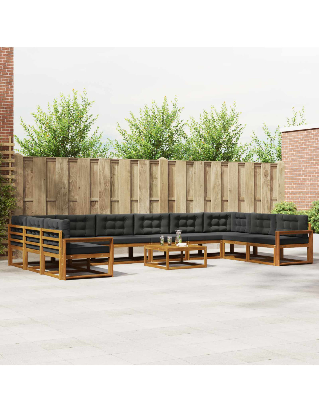 Questo set di divani da giardino ha un design moderno e snello, perfetto per ogni patio, giardino o area piscina. È fatto di legno massello di acacia, con una bella tonalità marrone che si combina bene con lo schienale a doghe e i braccioli, creando un'atmosfera accogliente e raffinata per rilassarsi e socializzare.