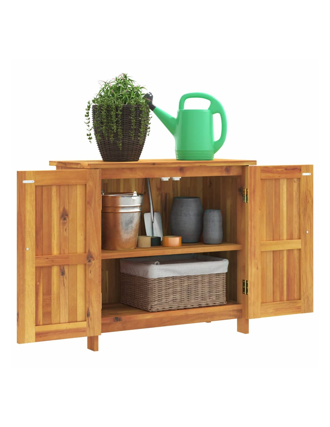 - Ampie applicazioni: questa credenza è perfetta da tenere sul balcone per vasi di piante e attrezzi da giardino, nel corridoio per le scarpe o in bagno per tenere in ordine shampoo e asciugamani.