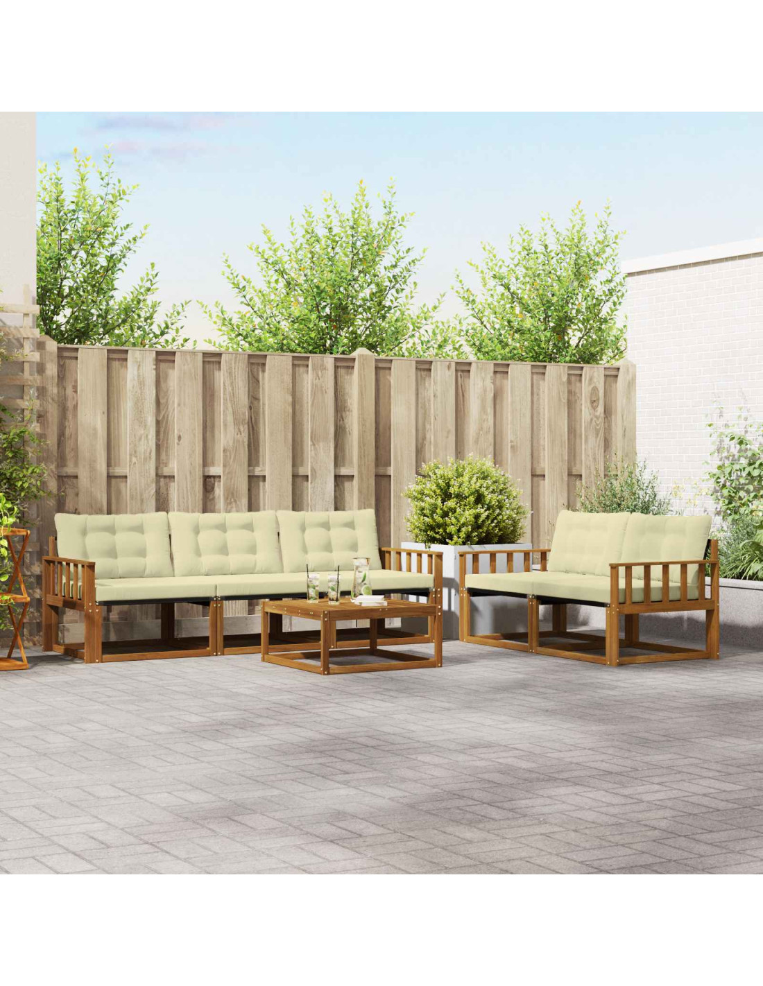 Il set di mobili da esterno unisce stile e funzionalità, diventando il punto focale di qualsiasi giardino o terrazza. Con il suo design moderno, linee pulite e dettagli semplici, aggiunge un tocco elegante mentre invita al relax e ai momenti in compagnia. Realizzato in legno massello di acacia, è robusto e bello, perfetto per chi cerca un mix di praticità e raffinatezza nei mobili esterni. Legno massello di acacia durevole: Fatti colpire dalla robustezza del legno massello di acacia di questo set. Resiste bene alle intemperie e offre un supporto stabilissimo, mentre il suo colore caldo si integra bene con ogni giardino e terrazza. Design resistente alle intemperie: Questo mobile da esterno ha una finitura che lo protegge da sole, pioggia e altri eventi atmosferici. Così mantiene il suo aspetto e la sua funzionalità nel tempo. Componenti e design: Ogni pezzo è pensato per garantire stile e funzionamento. I dettagli come il poggiatesta e i braccioli offrono comfort extra, mentre il design armonioso rende il tutto perfetto per ogni occasione all’aperto. Comfort e versatilità: Con il suo design modulare, puoi modificarlo facilmente per adattarsi a ogni spazio. Ideale per un momento di relax, eventi sociali o anche una lettura tranquilla, si inserisce perfettamente in qualsiasi ambiente esterno, aumentando comfort e usabilità. Cura e manutenzione facili: Per tenere i mobili al meglio, basta pulirli con un panno umido e non usare detergenti aggressivi. Un po'di manutenzione regolare aiuta a mantenere il loro aspetto e a farli durare nel tempo.