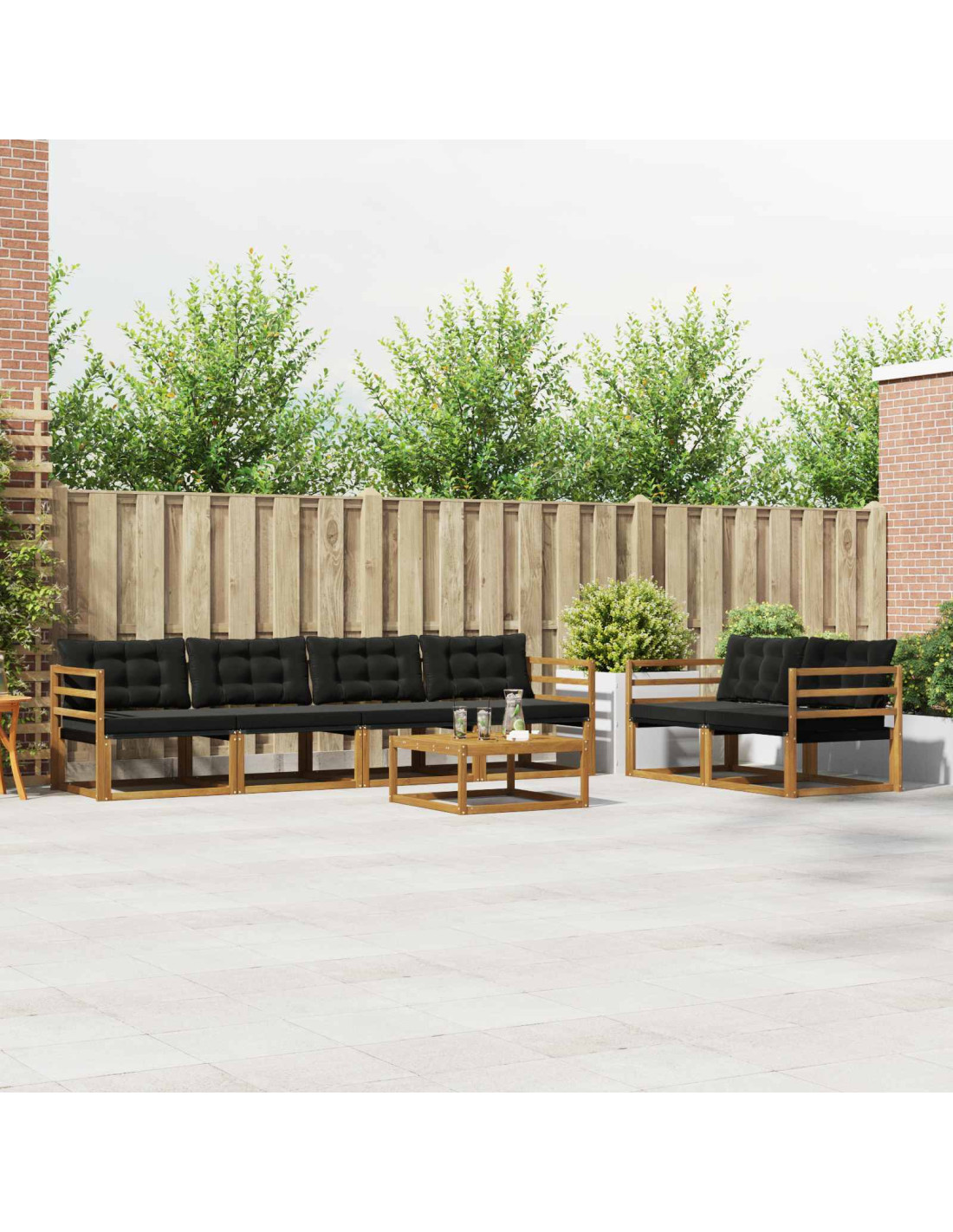 Il set di mobili da esterno unisce stile e funzionalità, diventando il pezzo principale per qualsiasi giardino o terrazza. Il design moderno, con linee pulite e minimalismo, offre eleganza mentre favorisce il relax e i momenti sociali all'aperto. Costruito in legno massello di acacia, assicura durata e un aspetto che dura nel tempo, rendendolo ideale per chi cerca sia praticità che bellezza nei mobili da esterno. Legno massello di acacia resistente: Questo set di mobili è costruito con legno massello di acacia, noto per la sua robustezza e resistenza. La struttura robusta offre un supporto solido e durevole, mentre il caldo tono del legno arricchisce ogni giardino o terrazza. Design resistente agli agenti atmosferici: La superficie verniciata offre una protezione extra contro sole e pioggia leggera. La finitura lucida preserva sia l'aspetto che la funzionalità, garantendo lunga durata per giardini, terrazze o cortili. Componenti e design: Ogni pezzo, dai braccioli ai poggiatesta, è progettato per equilibrio tra stile e funzionalità. Le caratteristiche di supporto offrono confort aggiuntivo, mantenendo un design coeso e visivamente armonioso per varie occasioni all'aperto. Comfort e versatilità: Il design modulare permette configurazioni flessibili per adattarsi a spazi e necessità. Ottimo per relax, incontri sociali o momenti di lettura, questo set si adatta facilmente a ogni ambiente esterno, massimizzando comfort e funzionalità. Cura semplice e manutenzione: Per mantenere i mobili, basta pulire con un panno umido e non usare detergenti abrasivi. La cura regolare aiuta a mantenere l'aspetto e prolungare la vita del set.