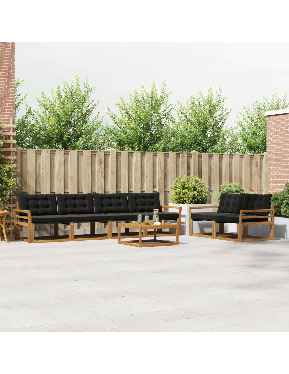 Il set di mobili da esterno unisce stile e funzionalità, diventando il pezzo principale per qualsiasi giardino o terrazza. Il design moderno, con linee pulite e minimalismo, offre eleganza mentre favorisce il relax e i momenti sociali all'aperto. Costruito in legno massello di acacia, assicura durata e un aspetto che dura nel tempo, rendendolo ideale per chi cerca sia praticità che bellezza nei mobili da esterno. Legno massello di acacia resistente: Questo set di mobili è costruito con legno massello di acacia, noto per la sua robustezza e resistenza. La struttura robusta offre un supporto solido e durevole, mentre il caldo tono del legno arricchisce ogni giardino o terrazza. Design resistente agli agenti atmosferici: La superficie verniciata offre una protezione extra contro sole e pioggia leggera. La finitura lucida preserva sia l'aspetto che la funzionalità, garantendo lunga durata per giardini, terrazze o cortili. Componenti e design: Ogni pezzo, dai braccioli ai poggiatesta, è progettato per equilibrio tra stile e funzionalità. Le caratteristiche di supporto offrono confort aggiuntivo, mantenendo un design coeso e visivamente armonioso per varie occasioni all'aperto. Comfort e versatilità: Il design modulare permette configurazioni flessibili per adattarsi a spazi e necessità. Ottimo per relax, incontri sociali o momenti di lettura, questo set si adatta facilmente a ogni ambiente esterno, massimizzando comfort e funzionalità. Cura semplice e manutenzione: Per mantenere i mobili, basta pulire con un panno umido e non usare detergenti abrasivi. La cura regolare aiuta a mantenere l'aspetto e prolungare la vita del set.