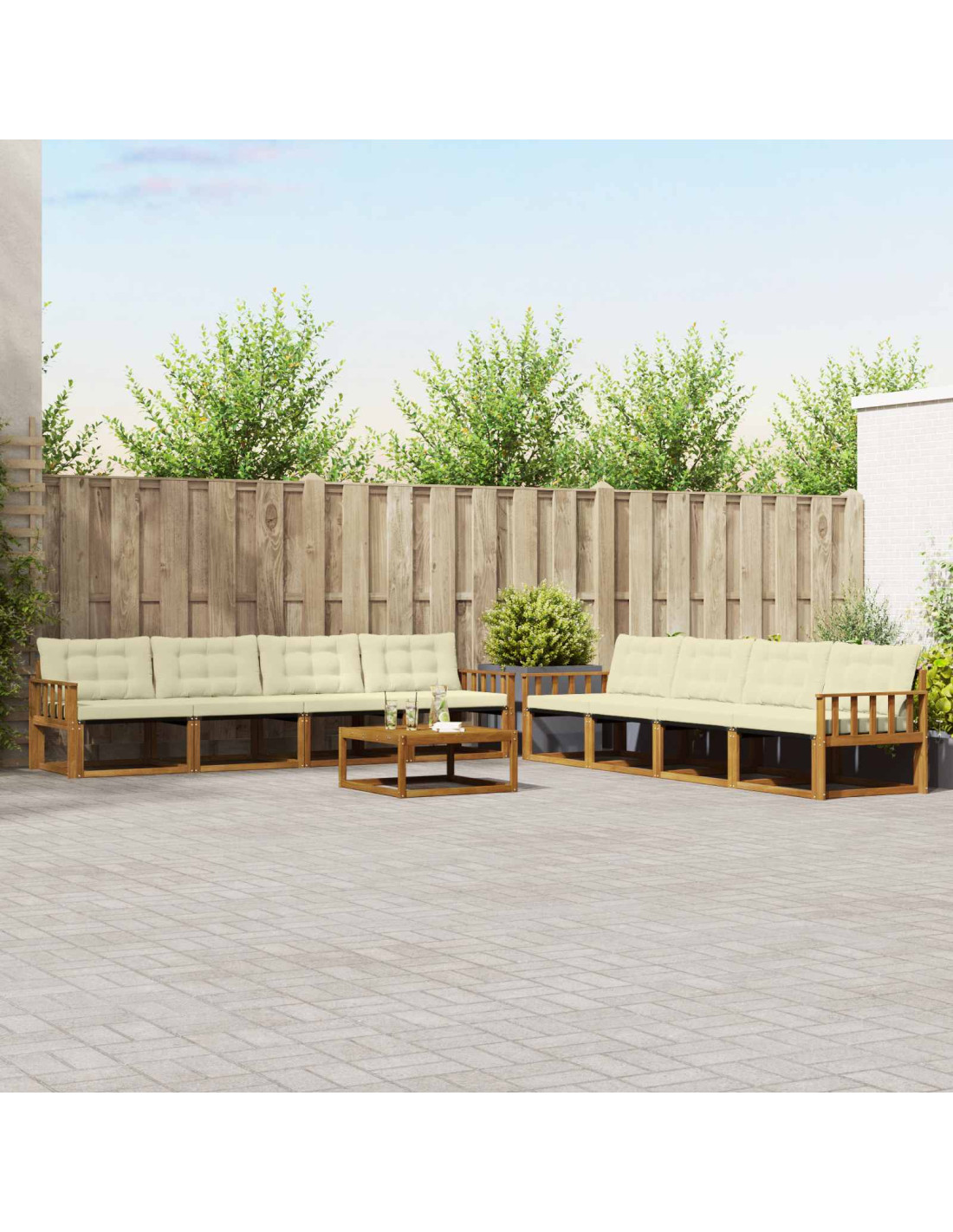 Questo set di mobili da esterno è un mix di stile e funzionalità, creando un punto focale speciale per il tuo giardino o terrazza. Con il suo design moderno, semplice e senza fronzoli, aggiunge eleganza e incoraggia il relax all'aperto e le riunioni con gli amici. È fatto di legno massello di acacia, il che significa resistenza e un aspetto che dura nel tempo, perfetto per chi cerca praticità e design elegante nei mobili da esterno. Legno massello di acacia resistente: Questo set di mobili da esterno è realizzato in legno massello di acacia, noto per la sua resistenza e durata. La struttura robusta offre una base solida, mentre il colore caldo valorizza il tuo giardino o terrazza. Design resistente alle intemperie: La superficie verniciata protegge il set da sole, pioggia leggera e altre condizioni atmosferiche. La finitura lucida mantiene il look e la funzionalità, garantendo che duri a lungo anche nel tuo giardino o terrazza. Componenti e design: Ogni pezzo, dai braccioli agli schienali, è pensato per essere sia bello che utile. Le caratteristiche di supporto offrono comfort, mentre l'aspetto coordinato assicura che tutto si integri perfettamente per vari eventi all'aperto. Comfort e versatilità: Il design modulare permette di sistemare i divani in modi diversi, perfetti per ogni esigenza. Ideale per il relax o per socializzare, questo set si adatta bene a ogni tipo di ambiente esterno, aumentando comfort e funzionalità. Manutenzione facile: Per tenere i mobili in buone condizioni, pulisci con un panno umido ed evita prodotti troppo aggressivi. Una cura regolare aiuta a mantenere il loro aspetto e prolunga la durata del set.