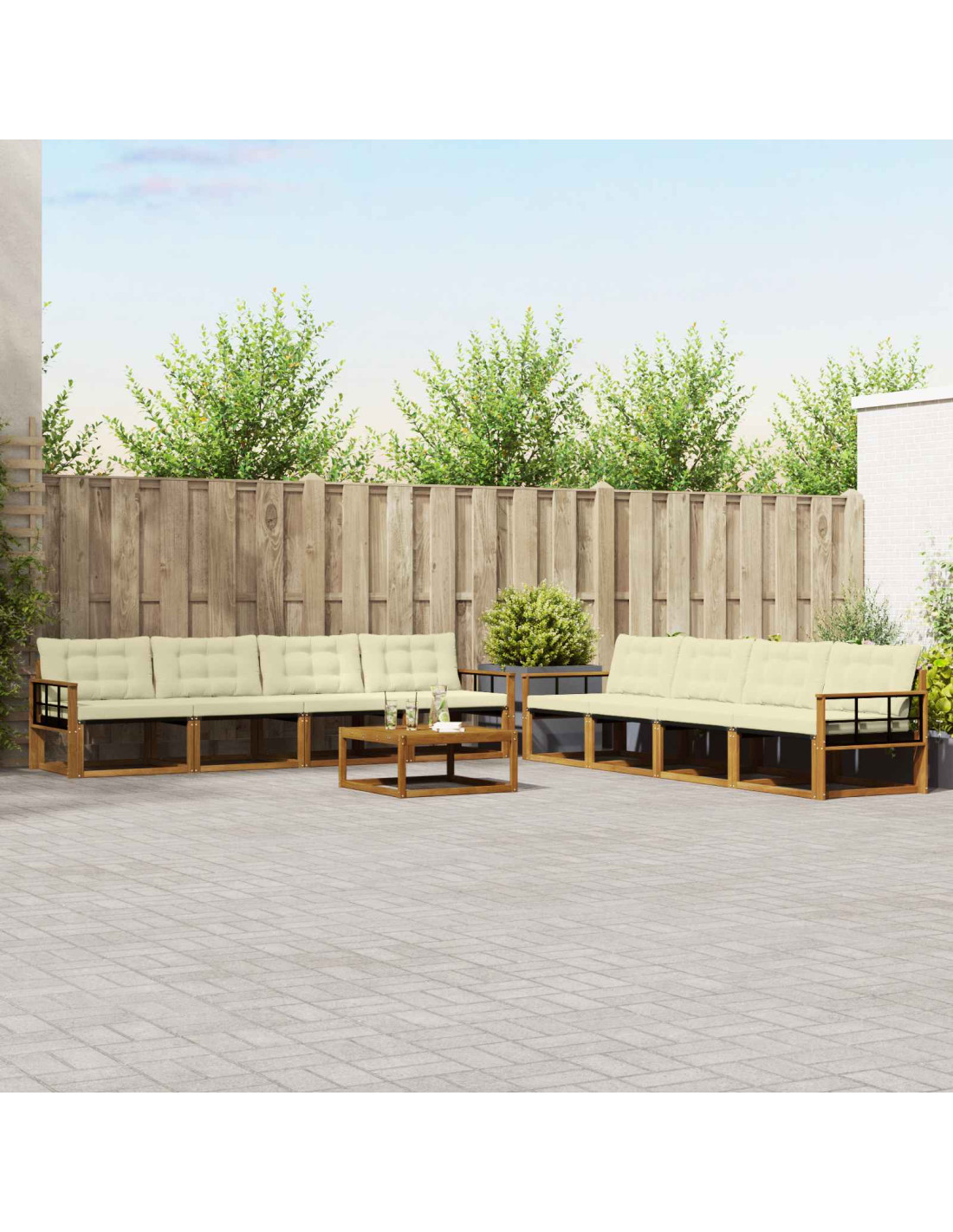 Questo set di mobili da esterno è un mix di stile e funzionalità, creando un punto focale speciale per il tuo giardino o terrazza. Con il suo design moderno, semplice e senza fronzoli, aggiunge eleganza e incoraggia il relax all'aperto e le riunioni con gli amici. È fatto di legno massello di acacia, il che significa resistenza e un aspetto che dura nel tempo, perfetto per chi cerca praticità e design elegante nei mobili da esterno. Legno massello di acacia resistente: Questo set di mobili da esterno è realizzato in legno massello di acacia, noto per la sua resistenza e durata. La struttura robusta offre una base solida, mentre il colore caldo valorizza il tuo giardino o terrazza. Design resistente alle intemperie: La superficie verniciata protegge il set da sole, pioggia leggera e altre condizioni atmosferiche. La finitura lucida mantiene il look e la funzionalità, garantendo che duri a lungo anche nel tuo giardino o terrazza. Componenti e design: Ogni pezzo, dai braccioli agli schienali, è pensato per essere sia bello che utile. Le caratteristiche di supporto offrono comfort, mentre l'aspetto coordinato assicura che tutto si integri perfettamente per vari eventi all'aperto. Comfort e versatilità: Il design modulare permette di sistemare i divani in modi diversi, perfetti per ogni esigenza. Ideale per il relax o per socializzare, questo set si adatta bene a ogni tipo di ambiente esterno, aumentando comfort e funzionalità. Manutenzione facile: Per tenere i mobili in buone condizioni, pulisci con un panno umido ed evita prodotti troppo aggressivi. Una cura regolare aiuta a mantenere il loro aspetto e prolunga la durata del set.
