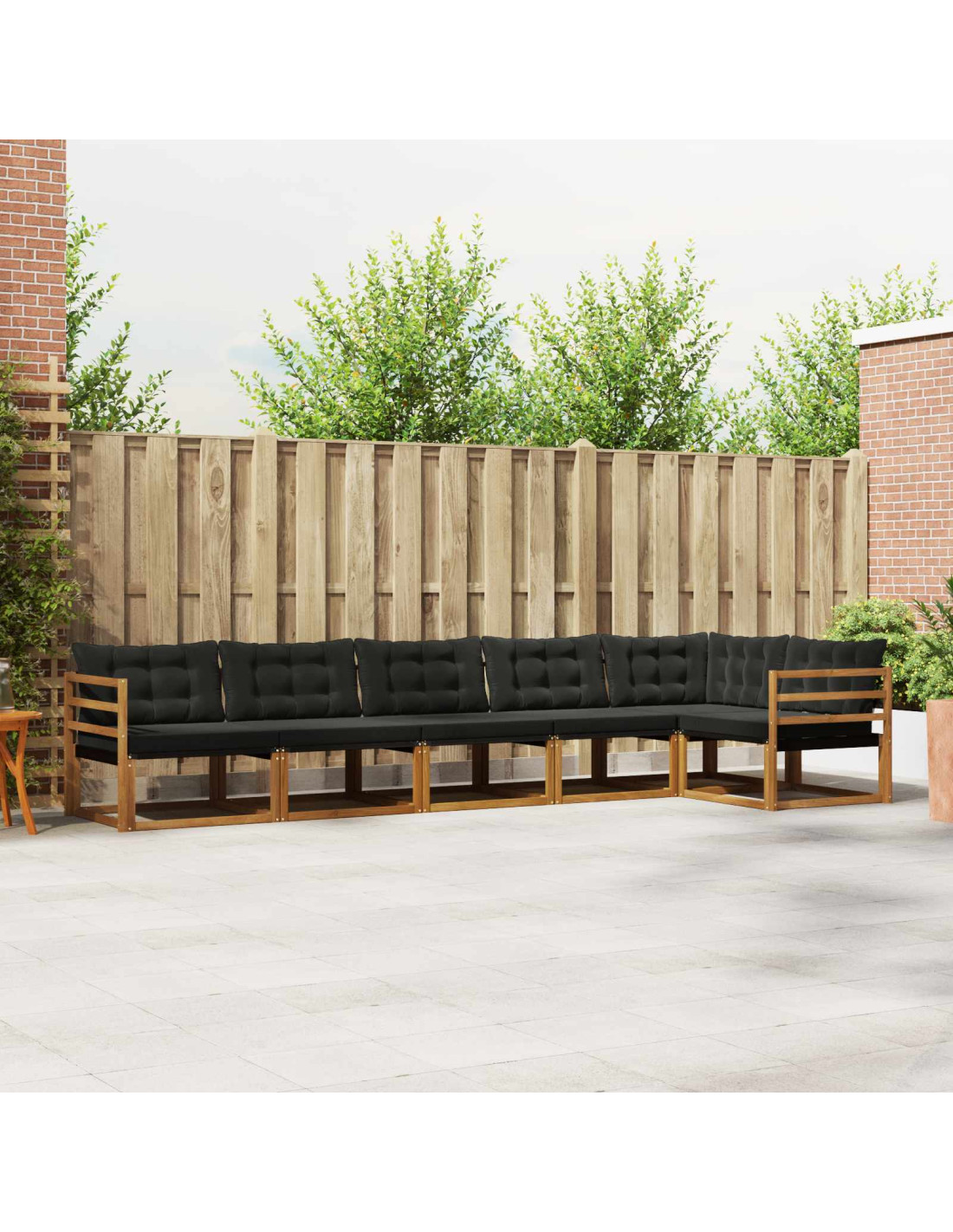 Questo set di divani per esterni è semplice e funzionale, perfetto per il tuo giardino o terrazza. Realizzato con legno massello di acacia e materiali in Textilene, aggiunge un tocco moderno e promette comfort. Ideale per accogliere amici e familiari, rende ogni incontro all'aperto speciale. Legno Massello di Acacia: Questo legno robusto offre un look senza tempo ed è resistente alle intemperie. Garantisce durabilità e mantiene il suo fascino, pioggia o sole. Cuscino Resistente alle Intemperie: I cuscini sono realizzati con tessuti impermeabili per garantire comfort e resistenza. La schiuma interna rende la seduta super confortevole, perfetta per goderti il sole. Design di Supporto: Schienali e braccioli pratici aumentano il comfort, permettendoti di rilassarti al meglio. Che si tratti di chiacchierare o semplicemente di goderti un po’ di pace, questo set è l’ideale. Layout Modulare: La costruzione modulare permette di cambiare configurazione a piacere, adattandosi a qualsiasi spazio e evento. È perfetto per creare un'atmosfera accogliente in giardino. Facile Manutenzione: Grazie alla superficie facile da pulire e ai cuscini rimovibili con zip, la manutenzione diventa un gioco da ragazzi.
