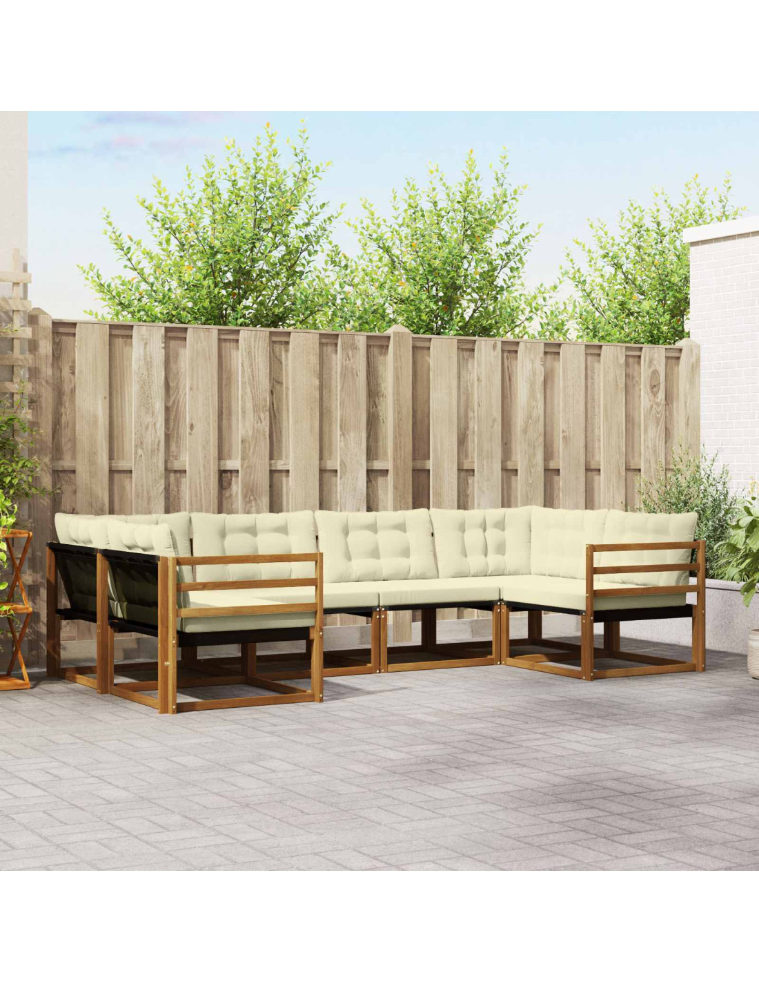 Il set di mobili da esterno combina stile e funzionalità, diventando il punto focale di ogni giardino o terrazza. Il design moderno, con linee pulite e dettagli minimali, porta eleganza e favorisce il relax e la socializzazione all'aperto. Realizzato interamente in legno massello di acacia, questo set è resistente e bello da vedere, perfetto per chi cerca praticità senza rinunciare a un tocco di classe nei mobili da esterno. Legno Massello di Acacia Durevole: Questo set è realizzato in legno massello di acacia, noto per la sua robustezza e resistenza. La costruzione solida offre stabilità e migliora l'atmosfera di giardini e terrazzi. Design Resistente alle Intemperie: Le superfici verniciate offrono protezione contro sole e pioggia leggera. La finitura lucida conserva l'aspetto e la funzionalità, per una lunga durata all'aperto. Componenti & Design: Ogni elemento, dai braccioli agli schienali, punta su stile e funzionalità. Le caratteristiche di supporto aggiungono comfort, mentre il design coeso regala un insieme armonioso perfetto per molte occasioni esterne. Comfort & Versatilità: Il design modulare permette configurazioni versatili per spazi diversi. Ottimo per rilassarsi, fare socialità o leggere, si adatta facilmente a ogni ambiente, massimizzando comfort e usabilità. Facile Cura e Manutenzione: Per mantenere il set in ottime condizioni, basta pulirlo con un panno umido, evitando detergenti aggressivi. Una pulizia regolare conserva il suo aspetto e ne prolunga la durata.