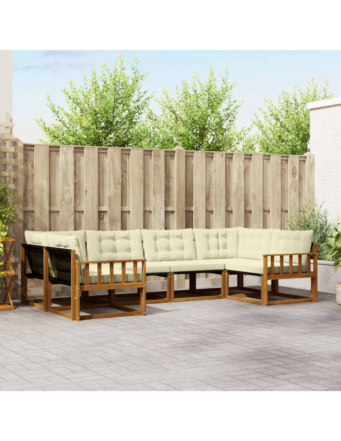 Il set di mobili da esterno combina stile e funzionalità, diventando il punto focale di ogni giardino o terrazza. Il design moderno, con linee pulite e dettagli minimali, porta eleganza e favorisce il relax e la socializzazione all'aperto. Realizzato interamente in legno massello di acacia, questo set è resistente e bello da vedere, perfetto per chi cerca praticità senza rinunciare a un tocco di classe nei mobili da esterno. Legno Massello di Acacia Durevole: Questo set è realizzato in legno massello di acacia, noto per la sua robustezza e resistenza. La costruzione solida offre stabilità e migliora l'atmosfera di giardini e terrazzi. Design Resistente alle Intemperie: Le superfici verniciate offrono protezione contro sole e pioggia leggera. La finitura lucida conserva l'aspetto e la funzionalità, per una lunga durata all'aperto. Componenti & Design: Ogni elemento, dai braccioli agli schienali, punta su stile e funzionalità. Le caratteristiche di supporto aggiungono comfort, mentre il design coeso regala un insieme armonioso perfetto per molte occasioni esterne. Comfort & Versatilità: Il design modulare permette configurazioni versatili per spazi diversi. Ottimo per rilassarsi, fare socialità o leggere, si adatta facilmente a ogni ambiente, massimizzando comfort e usabilità. Facile Cura e Manutenzione: Per mantenere il set in ottime condizioni, basta pulirlo con un panno umido, evitando detergenti aggressivi. Una pulizia regolare conserva il suo aspetto e ne prolunga la durata.