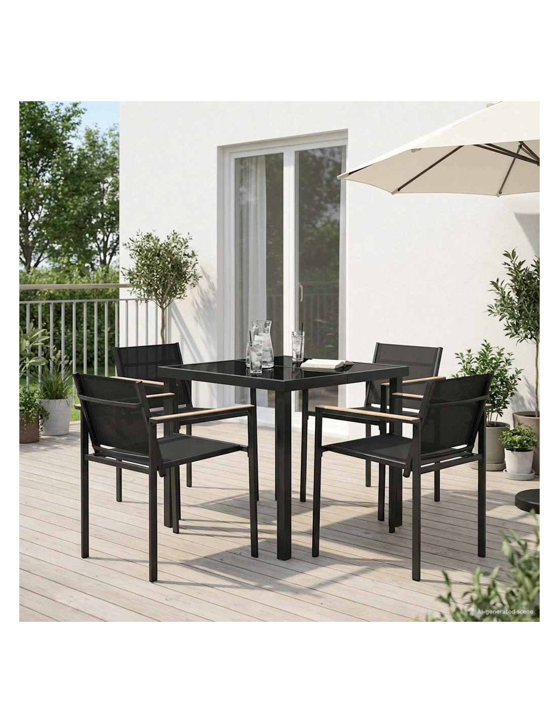 Questo set di mobili da esterno moderno è progettato per migliorare qualsiasi giardino o terrazza con il suo stile elegante e minimalista. Costruito con una robusta struttura in acciaio, offre sia durata che un fascino contemporaneo. La finitura verniciata a polvere non solo offre un aspetto chic, ma garantisce anche un uso prolungato, anche in diverse condizioni climatiche. Che tu stia ospitando amici o godendoti momenti all'aperto nella vita quotidiana, questo set si adatta perfettamente a varie occasioni. Costruzione del telaio in acciaio Il robusto telaio in acciaio offre una straordinaria resistenza e stabilità, rendendo questo set di mobili da esterno una scelta affidabile per un uso a lungo termine. La finitura verniciata a polvere garantisce resistenza contro le intemperie, permettendo al set di resistere a condizioni meteorologiche più dure senza perdere il suo appeal visivo. Sedili in Textilene Scopri il comfort con i sedili in Textilene progettati per offrire un'ottima ventilazione. Questo materiale traspirante aiuta a mantenerti fresco durante le giornate calde, migliorando il tuo tempo di relax in patio o in terrazza. Piano in vetro temperato Con un elegante piano in vetro temperato, il set offre una superficie facile da pulire, perfetta per pranzare o intrattenere ospiti all'aperto. Il vetro aggiunge un tocco di eleganza mantenendo sicurezza e durata, ideale per un uso duraturo. Utilizzo versatile Questo set di mobili è perfetto per una varietà di spazi esterni, inclusi giardini, patii o terrazze. Il suo design moderno si complementa con vari stili di decorazione, rendendolo un'aggiunta versatile a qualsiasi ambiente domestico, adatto sia per riunioni informali che formali. Manutenzione facile Mantieni il tuo set da esterno in condizioni perfette pulendolo con un panno umido. I materiali sono selezionati per una facile pulizia e resistenza alle macchie, garantendo che i tuoi mobili mantengano il loro aspetto nel tempo senza problemi.