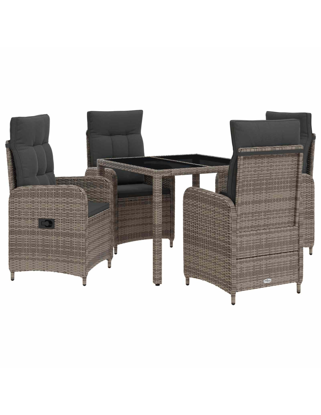 Questo set da pranzo moderno per esterni unisce stile e funzionalità per chi ama mangiare all'aperto. È progettato per spazi esterni con un look elegante e moderno, perfetto per le tue cene nel patio o pomeriggi di relax. Il design contemporaneo si abbina a caratteristiche pratiche, rendendolo perfetto per cene intime o feste con gli amici. È un vero esempio di vita all'aperto al suo meglio. Acciaio verniciato a polvere: La struttura di questo set è robusta e duratura, grazie alla costruzione in acciaio verniciato. Questa finitura lo rende resistente a pioggia e sole, mantenendo un aspetto elegante. È il supporto ideale per un set da esterno. Eleganza in polyrattan: Le sedie e le gambe sono realizzate in polyrattan, un materiale chic, resistente e adatto per l'esterno. Questo si sposa perfettamente con l'atmosfera esterna e la rende una scelta popolare tra gli amanti dei mobili da giardino. Superficie in vetro temperato: Al centro del set, la superficie in vetro temperato è non solo facile da pulire ma anche elegante. Offre un equilibrio tra raffinatezza e praticità, garantendo stabilità e resistenza ai graffi. Tessuto orientato al comfort: Grazie ai cuscini in poliestere, il comfort è assicurato. I cuscini sono doppiopunto e in schiuma, ideali per lunghe cene o caffè rilassati. Il tessuto asciuga velocemente e offre un comfort ottimo. Regolabilità e facilità: Puoi personalizzare il tuo comfort grazie allo schienale regolabile. Blocca la posizione che preferisci e goditi il relax, mentre i coperchi rimovibili dei sedili facilitano la manutenzione.