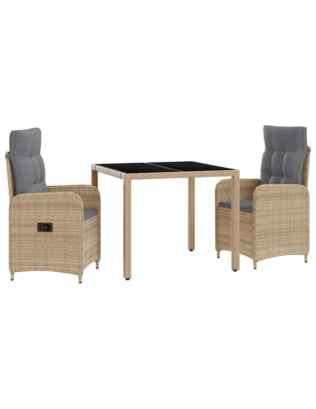 Questo set da pranzo moderno per esterni unisce stile e funzionalità per chi ama mangiare all'aperto. È progettato per spazi esterni con un look elegante e moderno, perfetto per le tue cene nel patio o pomeriggi di relax. Il design contemporaneo si abbina a caratteristiche pratiche, rendendolo perfetto per cene intime o feste con gli amici. È un vero esempio di vita all'aperto al suo meglio. Acciaio verniciato a polvere: La struttura di questo set è robusta e duratura, grazie alla costruzione in acciaio verniciato. Questa finitura lo rende resistente a pioggia e sole, mantenendo un aspetto elegante. È il supporto ideale per un set da esterno. Eleganza in polyrattan: Le sedie e le gambe sono realizzate in polyrattan, un materiale chic, resistente e adatto per l'esterno. Questo si sposa perfettamente con l'atmosfera esterna e la rende una scelta popolare tra gli amanti dei mobili da giardino. Superficie in vetro temperato: Al centro del set, la superficie in vetro temperato è non solo facile da pulire ma anche elegante. Offre un equilibrio tra raffinatezza e praticità, garantendo stabilità e resistenza ai graffi. Tessuto orientato al comfort: Grazie ai cuscini in poliestere, il comfort è assicurato. I cuscini sono doppiopunto e in schiuma, ideali per lunghe cene o caffè rilassati. Il tessuto asciuga velocemente e offre un comfort ottimo. Regolabilità e facilità: Puoi personalizzare il tuo comfort grazie allo schienale regolabile. Blocca la posizione che preferisci e goditi il relax, mentre i coperchi rimovibili dei sedili facilitano la manutenzione.