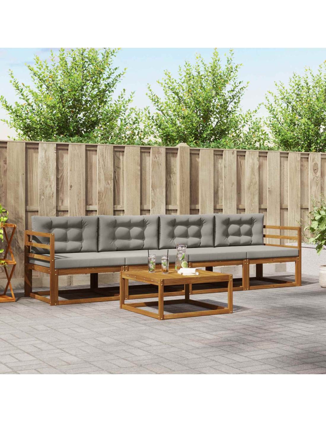 Questo set di divani modulari da esterno è il massimo per il living all'aperto moderno, unendo eleganza e funzionalità. Perfetto per un relax chic in giardini, patii o vicino alla piscina, crea un'atmosfera accogliente grazie alle sue linee pulite e minimalista. Il legno di acacia marrone naturale si integra bene in ogni contesto esterno, invitando a rilassarsi in totale comfort.