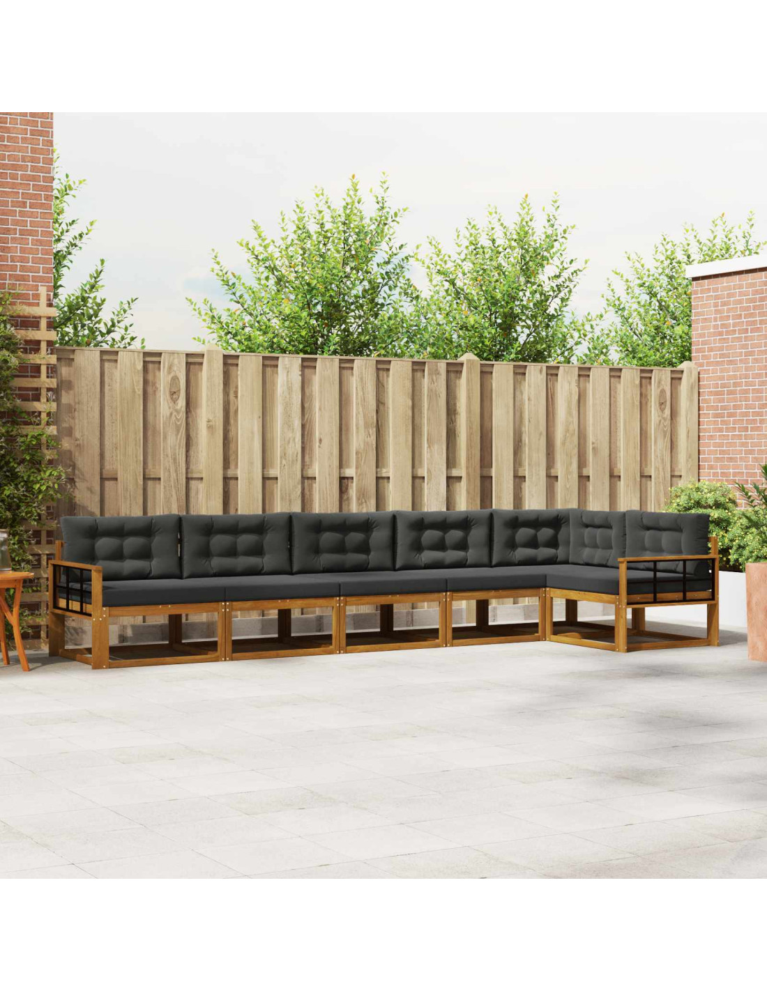 Questo set di divani per esterni dà un tocco moderno a qualsiasi giardino o patio. Progettato con uno stile minimalista, si adatta perfettamente a diversi spazi all'aperto. Le sue configurazioni modulari permettono di personalizzare l'assetto, rendendolo ideale per ogni esigenza. Costruito con attenzione al dettaglio, offre una solida presenza in ogni area esterna. Legno massello di acacia: Ogni pezzo è fatto di legno massello di acacia, conosciuto per la sua forza e bellezza naturale. Le sue tonalità calde aggiungono eleganza, mentre la resistenza garantisce una lunga durata, rendendolo perfetto per gli esterni. Design a listelli: Lo schienale e il telaio a listelli non solo sono belli da vedere, ma assicurano anche un buon flusso d'aria, rendendo le sedute confortevoli nelle giornate calde. Le doghe create con cura offrono un mix di stile classico e moderno. Schienale di supporto: Questo schienale migliora la postura, permettendo sedute ergonomiche e confortevoli. Invita a rilassarsi e a socializzare con stile. Capacità modulari: Questo set modulare offre la possibilità di riconfigurare i posti a sedere in base ai propri bisogni, perfetto per accogliere gli amici o per creare angoli più intimi. Manutenzione e cura: Questo set si pulisce facilmente con un panno umido. Se non lo usi, coprilo durante i periodi di maltempo per mantenerlo in ottime condizioni.