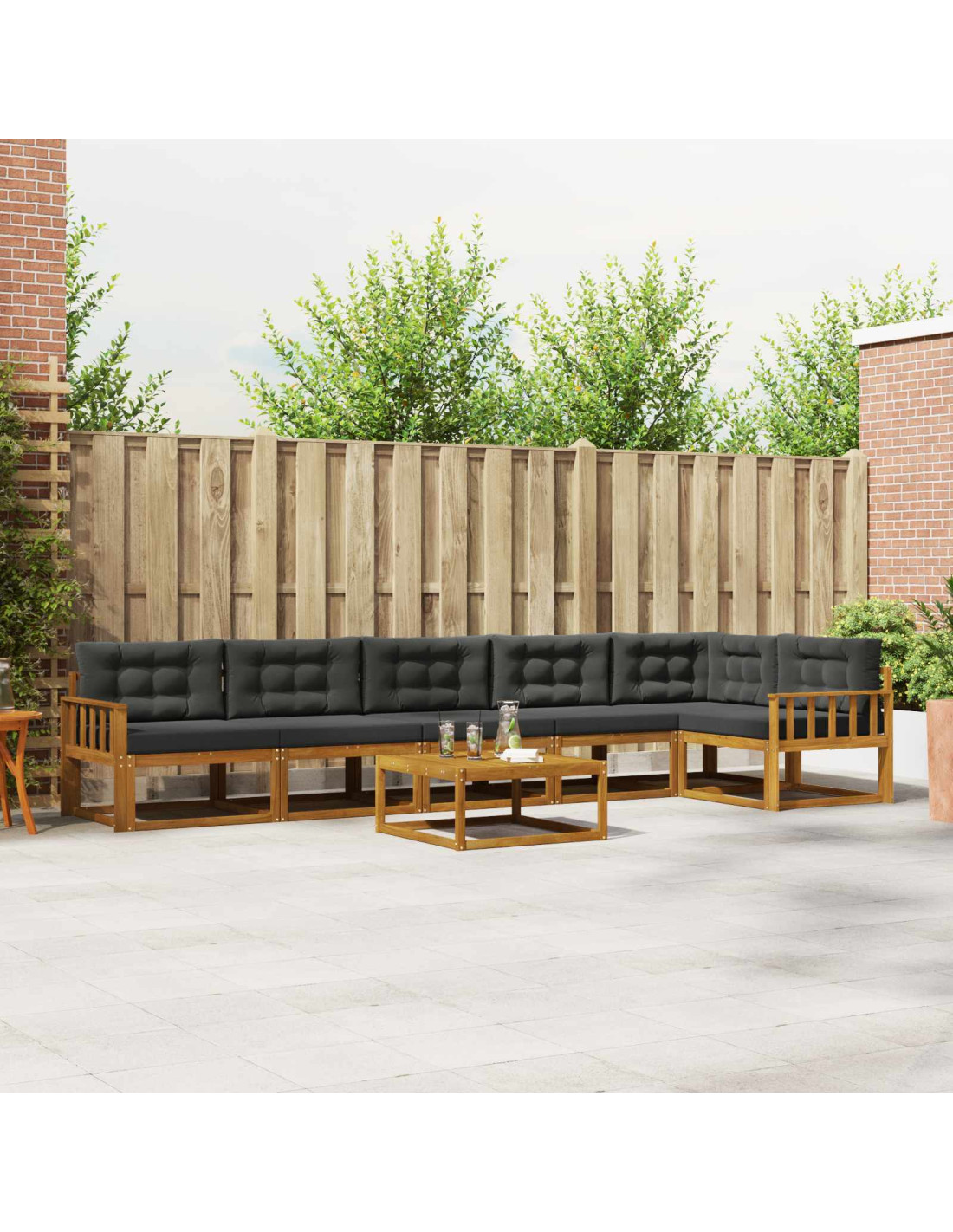 Questo elegante Outdoor Sectional Sofa Set unisce stile e funzionalità, perfetto per valorizzare qualsiasi giardino o patio. Con un design semplice, il legno di acacia gli conferisce un aspetto caldo e accogliente, ideale per riunioni familiari o serate tranquille all'aperto. Le linee pulite e il design minimale creano un'atmosfera contemporanea, ideale per ogni spazio esterno. Approfitta dell'equilibrio tra materiali resistenti e design bello, perfetto per accogliere amici o per goderti una serata tranquilla nel tuo giardino. Costruzione in acacia: Realizzato in robusto legno massello di acacia, il set di divani ha una finitura naturale che si integra perfettamente con gli spazi esterni. Questo legno è noto per la sua resistenza a diverse condizioni atmosferiche, mantenendo la sua bellezza nel tempo. La tonalità marrone naturale aggiunge calore al giardino, mantenendo durabilità e facilità di manutenzione. Schienale di supporto: Lo schienale a doghe è progettato per garantire comfort e un tocco di eleganza. Supporta bene la postura e offre comodità anche per periodi prolungati. Il design favorisce anche una buona circolazione dell'aria, migliorando l'uso senza compromettere l'estetica. Bracciolo pratico: I braccioli in legno massello di acacia offrono supporto extra per chi cerca comfort. Sia che tu stia vivendo un pomeriggio tranquillo o intrattenendo amici, assicurano un'esperienza di relax. Completano il look moderno e offrono comfort durante le conversazioni lunghe. Installazione versatile: Grazie al design modulare, il divano può essere riconfigurato facilmente per adattarsi a varie occasioni. Goditi l'adattabilità della disposizione, che si integra perfettamente in ogni spazio, da angoli accoglienti a aree sociali ampie, senza limitazioni. Manutenzione semplice: Mantieni l'aspetto del set pulendolo con un panno umido e coprendolo quando non ti serve. Tienilo all'ombra o al coperto durante il maltempo per allungarne la vita. Questo assicura eleganza e prestazioni durature negli anni.
