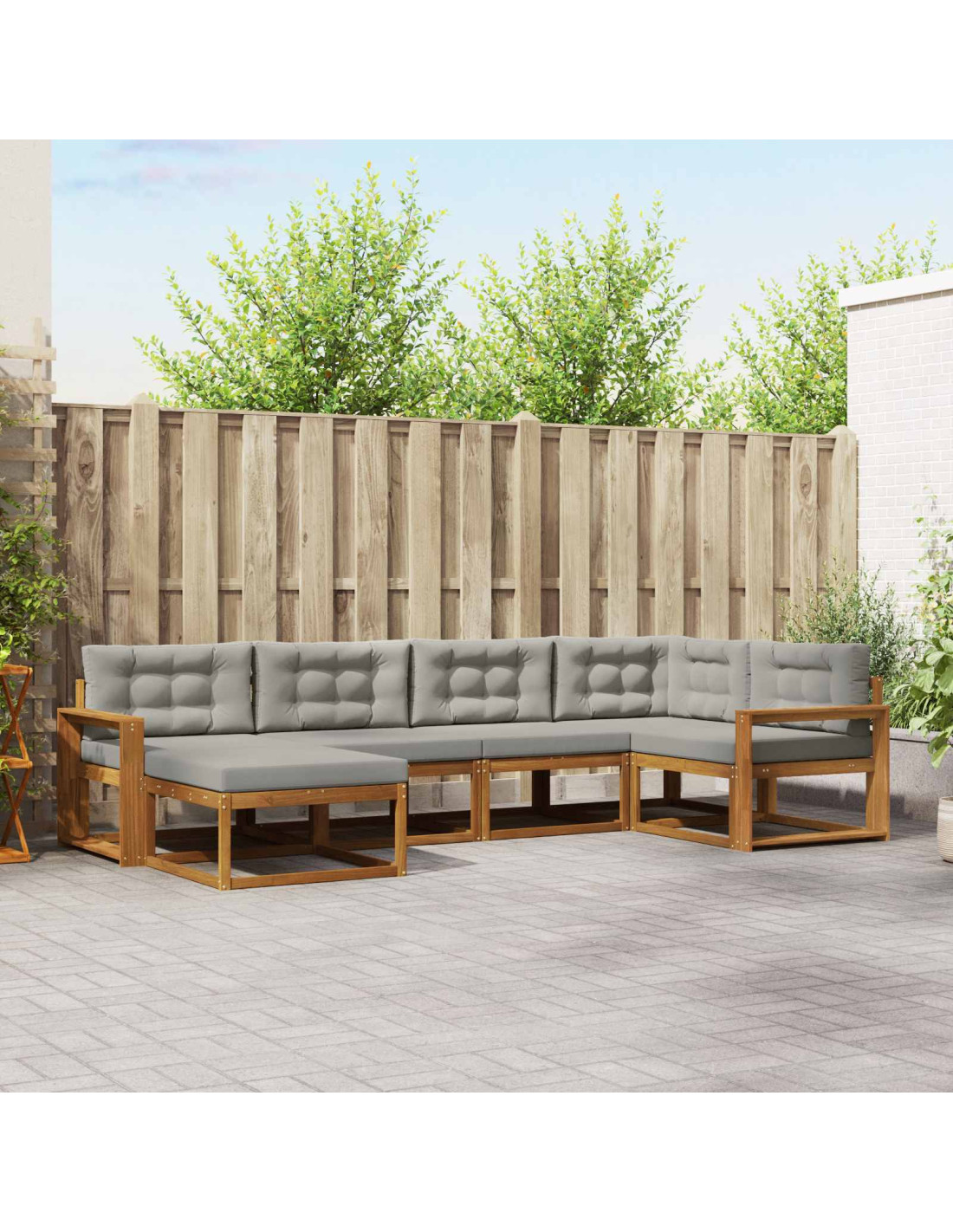 Questo set di divani per esterni è pensato per giardini e patii ed è il mix perfetto di stile e utilità, fornendo un modo elegante per sedersi all'aperto. Con un design moderno e fatto in legno massello di acacia, ha una forma minimalista che si adatta sia ai momenti di relax che a quelli sociali. È una scelta ideale per serate in piscina o pomeriggi tranquilli in giardino. Legno massello di acacia: Esso garantisce durabilità e naturale resistenza agli agenti atmosferici, mantenendo il set robusto in ogni situazione e aggiungendo un tocco elegante agli spazi esterni. Design a doghe: Questo set non è solo bello, ma anche pratico. Le doghe migliorano la ventilazione per mantenerti fresco e impedire l'umidità. Aggiungono anche uno stile distintivo al tuo patio. Schienale di supporto: La forma a doghe favorisce una postura corretta, facendoti star comodo durante lunghe chiacchierate o letture. Puoi stare sicuro di essere sostenuto in qualsiasi momento. Flessibilità modulare: Puoi facilmente riadattare il set per ogni occasione, sia per una festa che per momenti di relax. La sua capacità di adattamento lo rende un'ottima scelta per vari ambienti esterni. Semplicità di manutenzione: È semplice da tenere pulito: basta un panno umido e usare una copertura quando non lo usi. Così, il set resta bello e duraturo senza fatica!