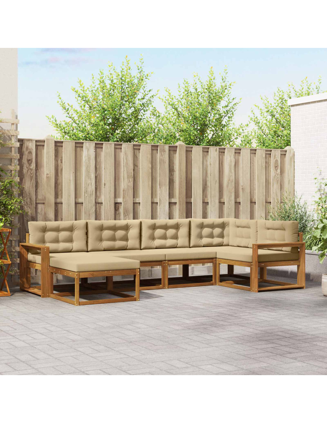 Questo set di divani per esterni è pensato per giardini e patii ed è il mix perfetto di stile e utilità, fornendo un modo elegante per sedersi all'aperto. Con un design moderno e fatto in legno massello di acacia, ha una forma minimalista che si adatta sia ai momenti di relax che a quelli sociali. È una scelta ideale per serate in piscina o pomeriggi tranquilli in giardino. Legno massello di acacia: Esso garantisce durabilità e naturale resistenza agli agenti atmosferici, mantenendo il set robusto in ogni situazione e aggiungendo un tocco elegante agli spazi esterni. Design a doghe: Questo set non è solo bello, ma anche pratico. Le doghe migliorano la ventilazione per mantenerti fresco e impedire l'umidità. Aggiungono anche uno stile distintivo al tuo patio. Schienale di supporto: La forma a doghe favorisce una postura corretta, facendoti star comodo durante lunghe chiacchierate o letture. Puoi stare sicuro di essere sostenuto in qualsiasi momento. Flessibilità modulare: Puoi facilmente riadattare il set per ogni occasione, sia per una festa che per momenti di relax. La sua capacità di adattamento lo rende un'ottima scelta per vari ambienti esterni. Semplicità di manutenzione: È semplice da tenere pulito: basta un panno umido e usare una copertura quando non lo usi. Così, il set resta bello e duraturo senza fatica!