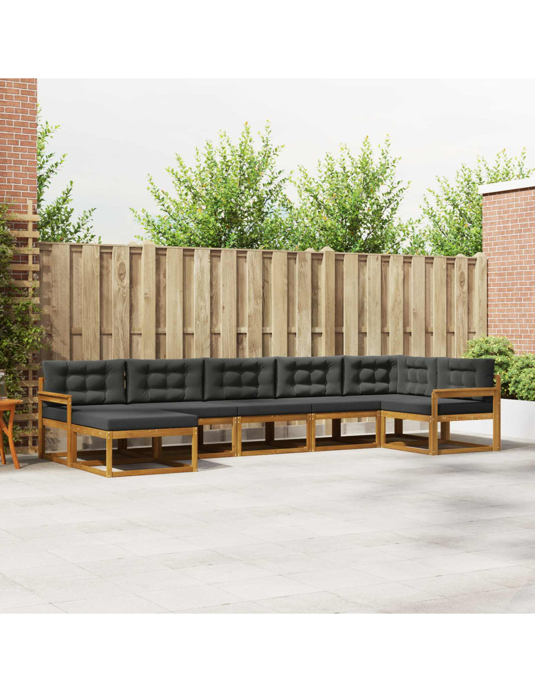 Questo set di divani per esterni è l'aggiunta perfetta per il tuo spazio all'aperto, unendo stile e funzionalità senza sforzo. Con linee moderne e forme pulite, è ideale per oziare, intrattenere o semplicemente rilassarsi in giardino o a bordo piscina. Le tonalità terrose e le texture naturali si integrano bene con la natura, creando l'atmosfera ideale per riunioni di famiglia o momenti di relax. Materiali di Qualità: Realizzato in legno massello di acacia, resistente e durevole, questo set di divani è progettato per resistere agli agenti atmosferici e mantenere la sua bellezza nel tempo. La venatura naturale del legno aggiunge raffinatezza agli spazi esterni, un mix di eleganza e robustezza che ne garantisce la longevità. Struttura Slattata Funzionale: Il telaio a doghe fisse garantisce stabilità e supporta i posti a sedere. Anche se non è regolabile, offre una buona ventilazione, aiutando a mantenere i mobili asciutti e facili da mantenere. Questa caratteristica offre un perfetto equilibrio tra prezzo e praticità. Comodo Comfort: Con uno schienale a doghe e braccioli pratici, questo set offre un grande sostegno per rilassarsi in qualsivoglia occasione. Lo schienale favorisce l'allineamento della colonna vertebrale, mentre i braccioli ergonomici ti consentono di riposare naturalmente, rendendo il set funzionale per un uso prolungato. Configurazione Adattabile: Il design modulare ti permette di creare configurazioni personalizzate, adattandosi a occasioni diverse. Che tu stia organizzando un grande evento all'aperto o godendoti un'area intima, questa flessibilità massimizza l'uso e ottimizza lo spazio. Cura e Manutenzione Esterna: Per mantenerlo al meglio, rimuovi polvere e detriti con un panno morbido e umido. Quando non lo usi, coprilo con un telo per proteggerlo dal sole, allungando così la sua vita e mantenendolo in ottimo stato in ogni stagione.