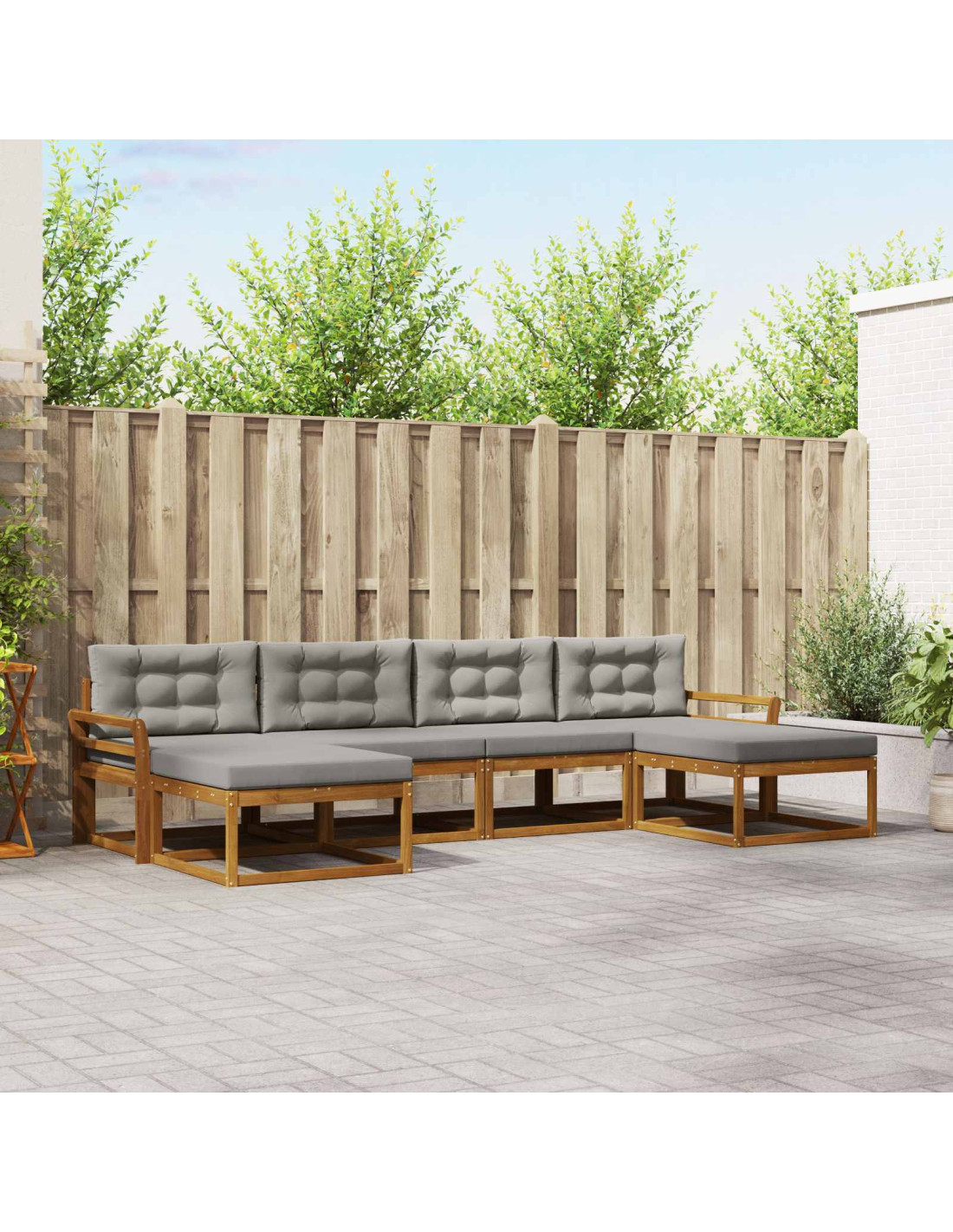 Questo set di divani moderni è perfetto per dare un tocco in più a qualsiasi spazio esterno. Pensato per essere trendy e duraturo, ha un look snello e moderno che si adatta a giardini, patii e zone vicino alla piscina. Con il legno massello di acacia, è una scelta che aggiunge sedute belle e robuste per incontri e relax all'aperto. La sua costruzione dettagliata sprigiona un'eleganza sofisticata, adattandosi senza sforzo a vari stili esterni, rendendolo perfetto per chi ama il design dei propri mobili da esterno. Legno Massello di Acacia: Questo robusto set di divani è realizzato in legno massello di acacia, resistente agli agenti atmosferici e perfetto per l'outdoor. La bellezza del legno combina resistenza e stile, assicurando durabilità in giardini, patii o accanto alla piscina. Design Elegante dello Schienale a Doghe: Lo schienale a doghe non solo è esteticamente bello, ma offre anche un ottimo supporto. Questo design assicura che il tuo set da esterno unisca comfort e stile, rendendo ogni seduta piacevole. Braccioli Integrati: Con braccioli che si uniscono al design, questo set di divani moderni offre supporto e comfort, ideale per momenti di relax. I braccioli migliorano la seduta e aggiungono un tocco di eleganza. Struttura Fissa a Doghe: Progettato per la stabilità, il telaio fisso a doghe garantisce una seduta sicura. Ogni componente è scelto con cura per garantire durevolezza e mantenere la forma anche in condizioni climatiche variabili. Istruzioni di Manutenzione Semplici: Basta pulire con un panno umido per mantenere i mobili puliti e allungarne la vita. La manutenzione facile lo rende un'opzione pratica per chi cerca comodità senza rinunciare all'estetica.