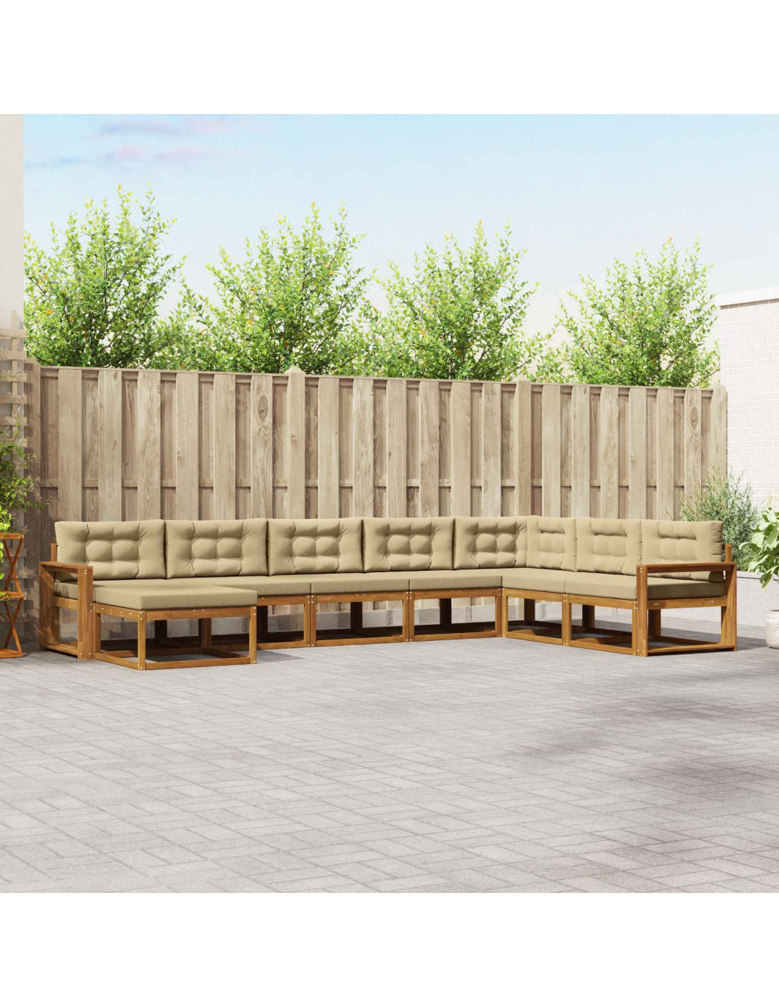Questo set di divani modulari da esterno è progettato per rendere qualsiasi spazio outdoor più bello e funzionale. Ha un design semplice e pulito, perfetto per chi vuole abbellire giardini, patii o aree piscina. La ricca colorazione marrone si integra perfettamente con la natura, creando un'atmosfera accogliente per i tuoi momenti all'aperto. Creato per chi cerca comfort e stile, questo set diventa il punto d'incontro ideale per socializzare o semplicemente rilassarsi. Legno massello di acacia: Realizzato in legno solido di acacia, noto per le sue belle venature e la resistenza agli agenti atmosferici. I mobili manterranno il loro fascino nel tempo. Il legno di acacia è spesso una scelta di fiducia per vivere all'aperto. Design a schienale a doghe: Lo schienale a doghe supporta benissimo la schiena, permettendo di stare seduti a lungo senza problemi. Non solo è bello da vedere, ma permette anche il passaggio dell'aria, mantenendoti fresco e comodo. Questa caratteristica rende il set funzionale e accattivante. Struttura a doghe fisse: La struttura rigida con schienali solidi offre sempre supporto. Anche se non è molto flessibile, assicura una seduta stabile, perfetta per esterni. Il design è utile e integra l'estetica moderna del divano. Caratteristiche di comfort complete: I braccioli in legno massello di acacia offrono ulteriore comodità. Sono ampi, ideali per appoggiare braccia o bevande, aumentando così l'usabilità, soprattutto durante le chiacchierate con gli amici. Design resistente: Questo set è pensato per l'uso all'aperto e tiene duro contro il sole e la pioggia. Grazie a misure di protezione studiate, i pezzi rimangono integri e mantenere il set è facile, basta un panno umido quando serve.