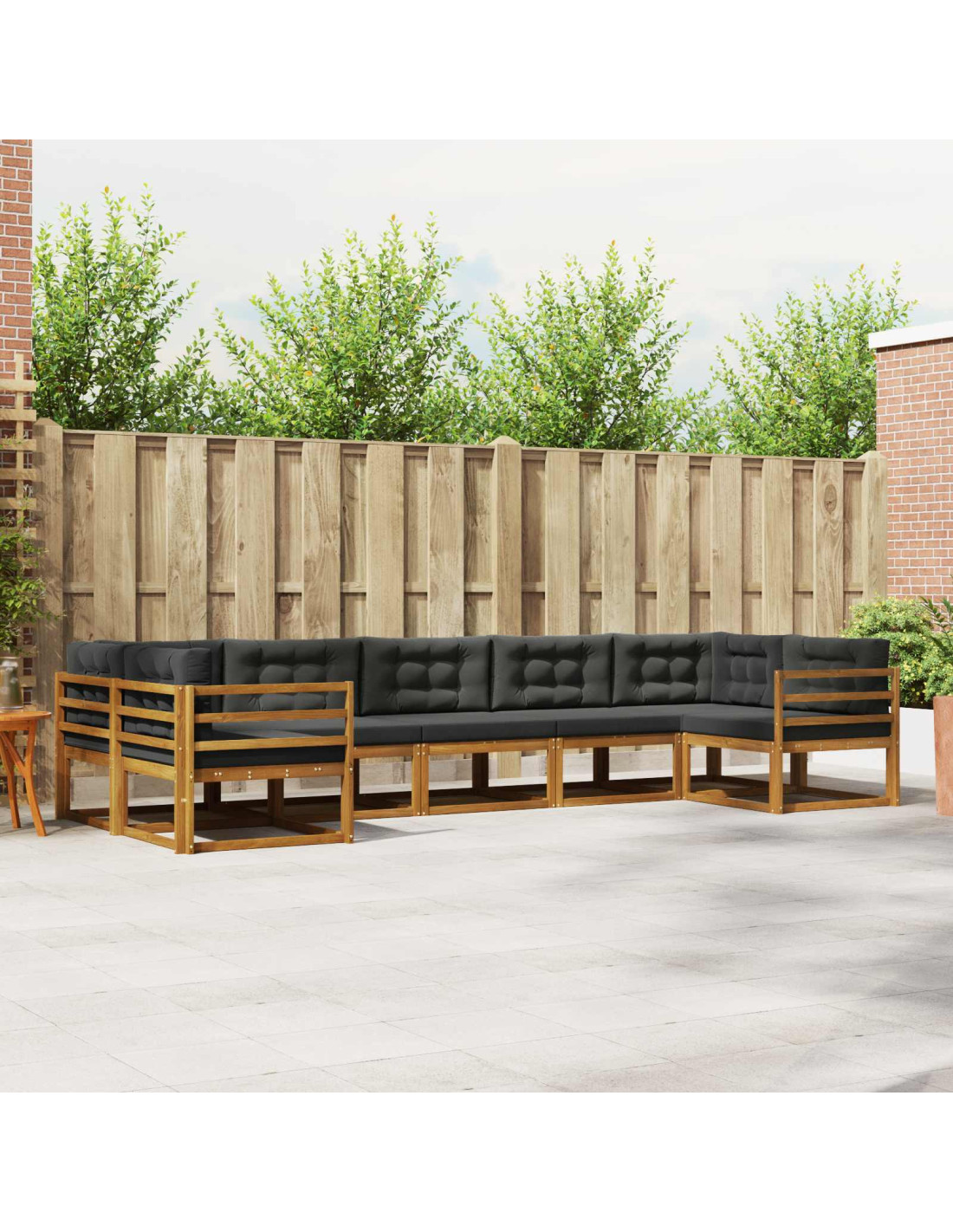 Questo set di divani sezionali da esterno è il protagonista perfetto per giardini, patii o aree piscina. Con un design minimalista e moderno, si integra bene negli spazi esterni contemporanei. Realizzato in legno massello di acacia, ha una bella tonalità marrone che aggiunge eleganza naturale a ogni ambiente. Che tu stia intrattenendo amici o godendoti un momento tranquillo sotto le stelle, questo set promette stile e comfort. Legno Massello di Acacia: L'intero set è realizzato in legno massello di acacia e offre resistenza e una bellezza naturale unica. Questa scelta di materiale combina durata e un'eleganza intramontabile. Le proprietà resistenti alle intemperie dell'acacia rendono il set ideale per l'uso all'aperto. Componenti Ergonomici: Ogni pezzo ha un design con schienale a doghe che assicura comfort e ventilazione. Completi con braccioli pratici, i componenti migliorano l'esperienza di seduta, perfetti per lunghe ore di relax all'aperto. Struttura Robusta: La struttura a doghe fornisce supporto solido, garantendo stabilità durante l'uso. Questa caratteristica mantiene il set performante, sia su un patio che accanto a una piscina, rendendolo perfetto per incontri all'aperto o momenti di tranquillità. Assemblaggio Facile: L'assemblaggio richiede solo due persone e un cacciavite, rendendo semplice unire i vari pezzi. Tutte le parti necessarie sono incluse, rendendo il processo diretto. Manutenzione Semplice: Progettato per richiedere poca manutenzione, bastano alcune pulizie con un panno umido per mantenerne l'aspetto, e una copertura quando non in uso per proteggerlo. Evitare la luce diretta del sole aiuta a preservare il colore caldo del legno.