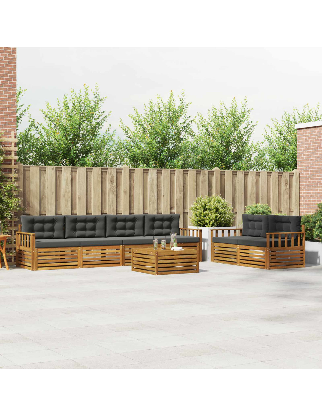 Il set di mobili da esterno unisce stile e praticità, creando un angolo fantastico per qualsiasi giardino o terrazza. Il suo design moderno, caratterizzato da linee pulite e dettagli minimalisti, aggiunge un tocco di eleganza mentre favorisce il relax e le riunioni all'aperto. Realizzato in legno massello di Acacia, è super resistente e ha un aspetto che dura nel tempo, quindi è perfetto per chi cerca sia funzionalità che bellezza nei mobili da esterno. Legno di Acacia Massiccio e Durevole: Fatto di legno di Acacia massiccio, questo set di mobili per esterni è robusto e resiste bene alle intemperie. La costruzione solida offre supporto e stabilità duraturi, mentre la calda tonalità naturale si abbina perfettamente a giardini e terrazze. Design Resistente alle Intemperie: Questo set di mobili da esterno ha una superficie trattata che fornisce una protezione extra contro sole e pioggia leggera. La finitura lucida mantiene sia l’aspetto che la funzionalità, garantendo durevolezza nel tempo per giardini, terrazze e cortili. Componenti e Design: Ogni pezzo, dai braccioli agli schienali, è progettato per unire stile e funzionalità. Le caratteristiche di supporto offrono comfort extra, mentre il design coeso assicura un aspetto armonioso, perfetto per ogni evento all'aperto. Comfort e Versatilità: Il design modulare permette di adattarlo facilmente a spazi e bisogni vari. È perfetto per rilassarsi, fare feste o ritagliarsi un momento di lettura tranquilla, adattandosi bene a qualsiasi spazio esterno con comfort e praticità. Facile Manutenzione: Per mantenere i mobili in ottimo stato, basta pulire la superficie con un panno umido, evitando detergenti aggressivi. Una cura regolare manterrà il loro aspetto e prolungherà la vita dei mobili.