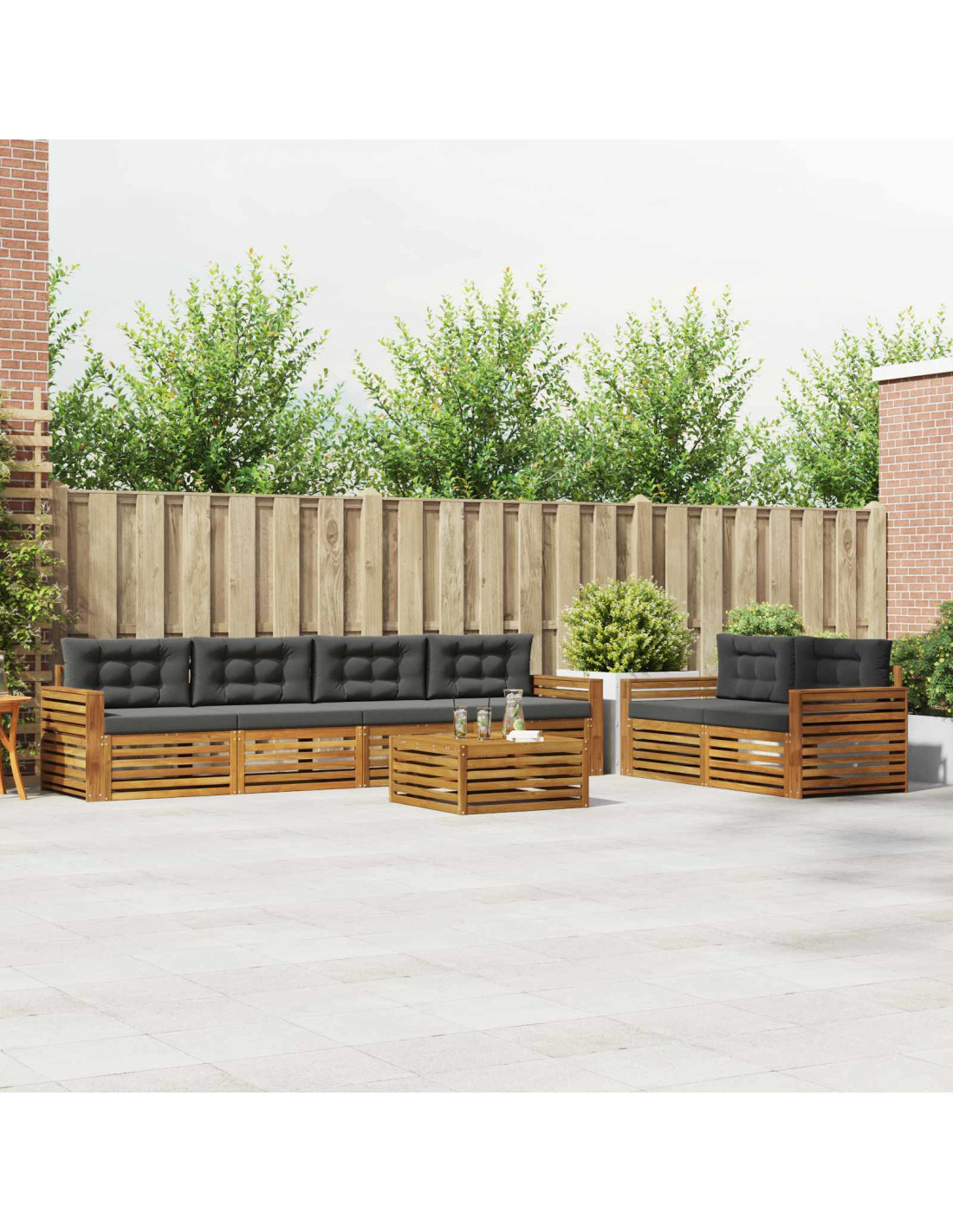 Il set di mobili da esterno unisce stile e praticità, creando un angolo fantastico per qualsiasi giardino o terrazza. Il suo design moderno, caratterizzato da linee pulite e dettagli minimalisti, aggiunge un tocco di eleganza mentre favorisce il relax e le riunioni all'aperto. Realizzato in legno massello di Acacia, è super resistente e ha un aspetto che dura nel tempo, quindi è perfetto per chi cerca sia funzionalità che bellezza nei mobili da esterno. Legno di Acacia Massiccio e Durevole: Fatto di legno di Acacia massiccio, questo set di mobili per esterni è robusto e resiste bene alle intemperie. La costruzione solida offre supporto e stabilità duraturi, mentre la calda tonalità naturale si abbina perfettamente a giardini e terrazze. Design Resistente alle Intemperie: Questo set di mobili da esterno ha una superficie trattata che fornisce una protezione extra contro sole e pioggia leggera. La finitura lucida mantiene sia l’aspetto che la funzionalità, garantendo durevolezza nel tempo per giardini, terrazze e cortili. Componenti e Design: Ogni pezzo, dai braccioli agli schienali, è progettato per unire stile e funzionalità. Le caratteristiche di supporto offrono comfort extra, mentre il design coeso assicura un aspetto armonioso, perfetto per ogni evento all'aperto. Comfort e Versatilità: Il design modulare permette di adattarlo facilmente a spazi e bisogni vari. È perfetto per rilassarsi, fare feste o ritagliarsi un momento di lettura tranquilla, adattandosi bene a qualsiasi spazio esterno con comfort e praticità. Facile Manutenzione: Per mantenere i mobili in ottimo stato, basta pulire la superficie con un panno umido, evitando detergenti aggressivi. Una cura regolare manterrà il loro aspetto e prolungherà la vita dei mobili.