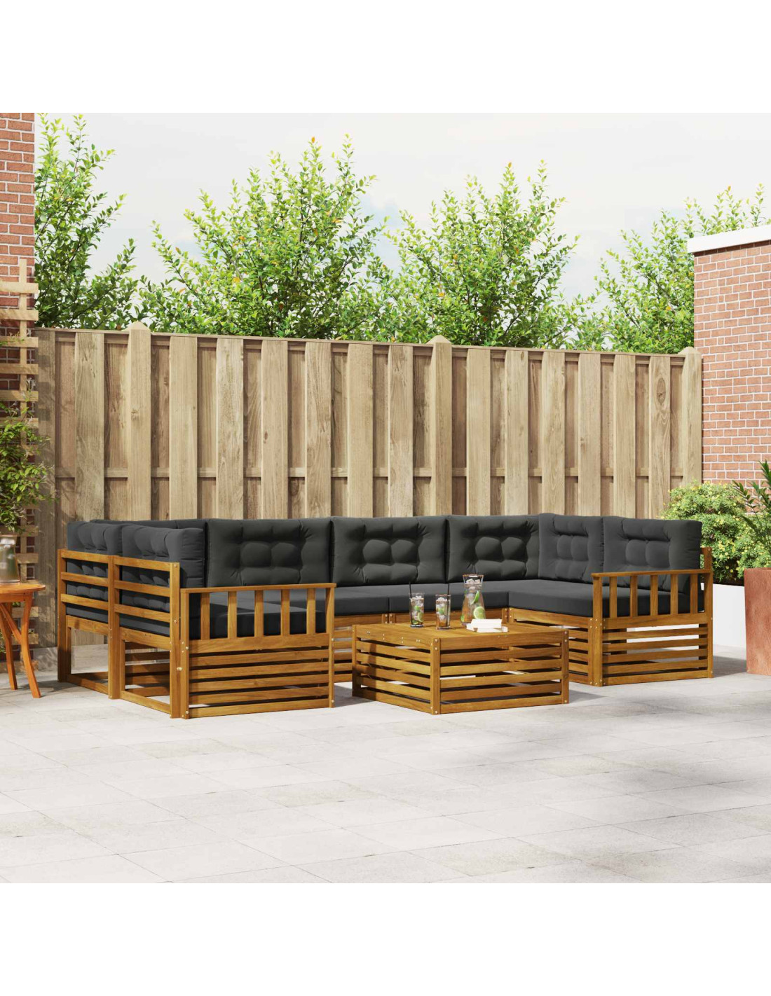 Il set di mobili da esterno unisce stile e funzionalità, diventando un punto focale per qualsiasi giardino o terrazza. Il design moderno, con linee pulite e dettagli minimi, aggiunge un tocco di eleganza e favorisce il relax all'aperto e le riunioni sociali. Fatto di legno massello di acacia, offre resistenza e un aspetto duraturo, rendendolo perfetto per chi cerca praticità e un design raffinato nei mobili per esterni. Legno massello di acacia robusto: Questo set di mobili per esterni è realizzato in legno massello di acacia, noto per la sua durabilità e resistenza agli agenti atmosferici. La struttura solida offre supporto e stabilità, mentre il caldo tono naturale arricchisce il tuo giardino o terrazza. Design resistente agli agenti atmosferici: La superficie verniciata fornisce protezione contro sole e pioggia leggera. La finitura lucida preserva aspetto e funzionalità, per una durata prolungata nel tuo giardino, terrazza o cortile. Componenti e design: Ogni pezzo, dai braccioli ai sedili, è progettato per stile e praticità. Caratteristiche di supporto assicurano comfort, mentre il design coeso crea un ensemble armonioso per varie occasioni all'aperto. Comfort e versatilità: Il design modulare permette configurazioni flessibili per adattarsi a diversi spazi e necessità. Perfetto per rilassarsi, socializzare o leggere tranquillamente, questo set si inserisce senza sforzo in qualsiasi ambiente esterno, massimizzando comfort e praticità. Cura e manutenzione semplici: Per mantenere i mobili in ottime condizioni, pulisci la superficie con un panno umido ed evita detergenti aggressivi. Una cura regolare mantiene il loro aspetto e allunga la vita dei mobili.