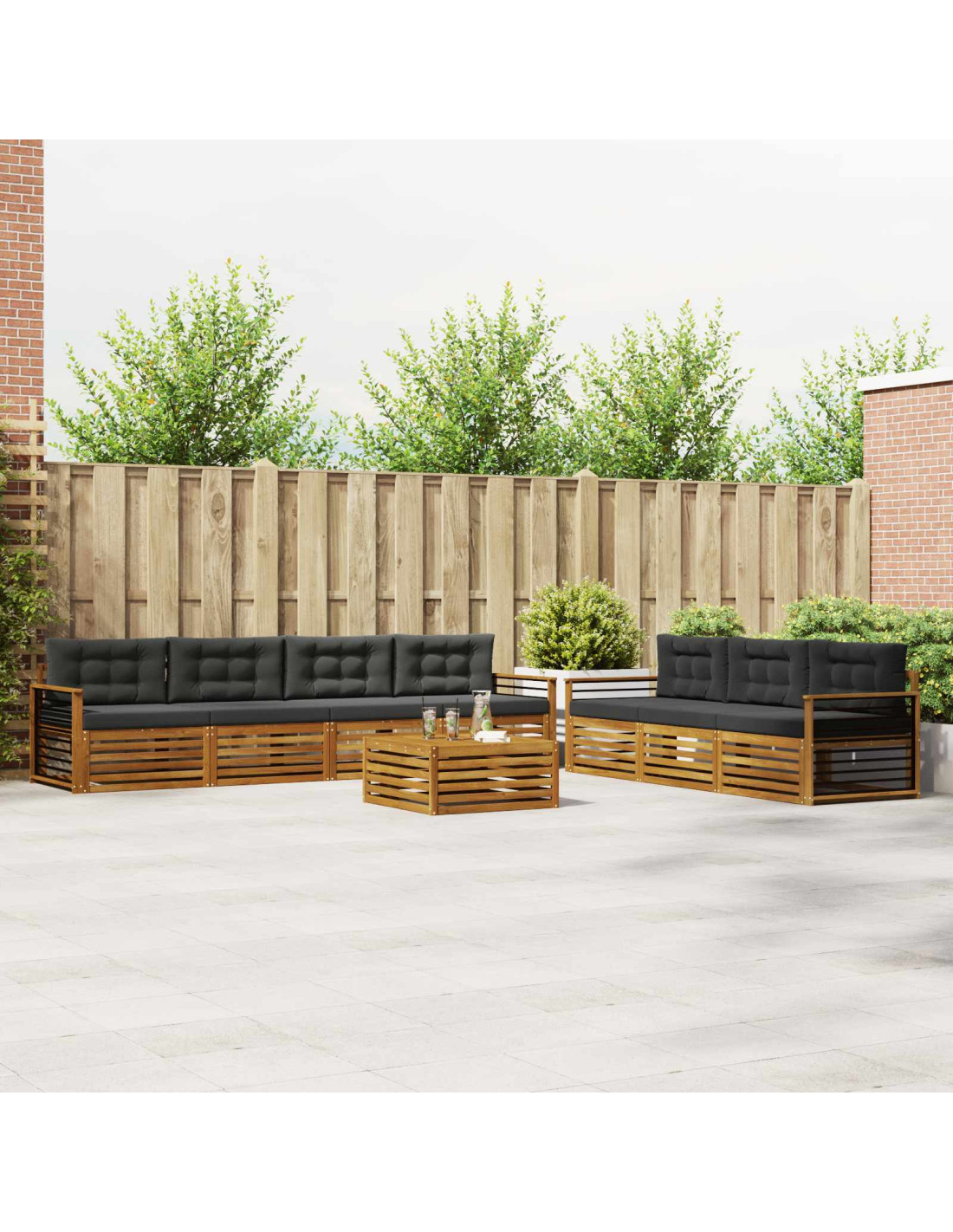Il set di mobili da esterno è un mix perfetto di stile e praticità, creando un punto d'attrazione per ogni giardino o terrazza. Con il suo design moderno, fatto di linee pulite e dettagli minimal, aggiunge un tocco di eleganza, rendendolo ideale per rilassarsi all'aperto e per incontri sociali. Realizzato in legno massello di acacia, è robusto e visivamente gradevole, perfetto per chi cerca funzionalità e bellezza nei mobili da esterno. Legno massello di acacia durevole: Questo set di mobili è fatto di legno massello di acacia, noto per la sua resistenza. La struttura robusta offre stabilità e il colore caldo arricchisce il tuo giardino. Design resistente agli agenti atmosferici: La superficie verniciata offre una protezione extra contro sole e pioggia, mantenendo un aspetto bello e funzionale nel tempo. Componenti e design: Ogni parte, dai braccioli agli schienali, è progettata sia per lo stile che per il comfort. Il design armonioso rende questo set perfetto per ogni occasione all'aperto. Comfort e versatilità: Il design modulare permette di personalizzarlo in base ai tuoi spazi. È l'ideale per rilassarti, fare festa o leggere in tranquillità, adattandosi facilmente a qualsiasi ambiente esterno. Facile cura e manutenzione: Per mantenere i mobili in ottimo stato, basta pulirli con un panno umido ed evitare detergenti aggressivi. Una manutenzione semplice aiuta a prolungarne la vita.