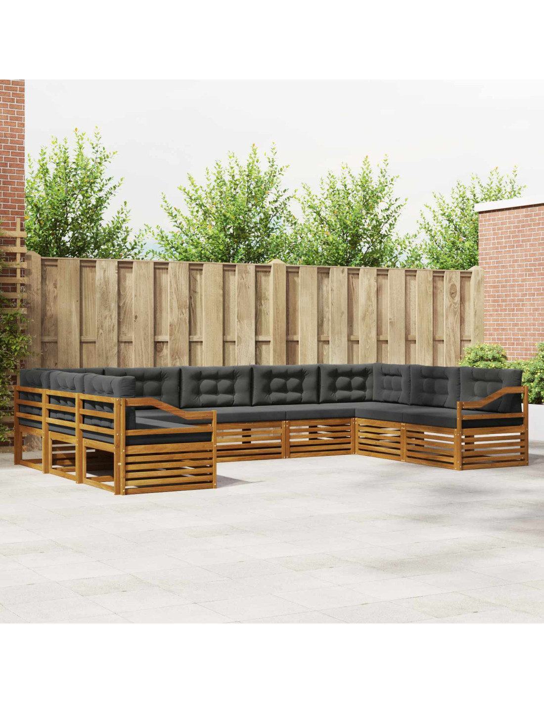 Il set di mobili per esterni unisce stile e funzionalità, diventando il pezzo centrale perfetto per qualsiasi giardino o terrazza. Il design moderno, con linee pulite e dettagli minimi, aggiunge eleganza rendendolo ideale per relax e incontri sociali all'aperto. Realizzato interamente in legno massello di acacia, questo set promette durata e una bellezza visiva che dura nel tempo, perfetto per chi cerca praticità e un design raffinato nei mobili da esterno. Legno Massello di Acacia Durevole: Questo set da esterno è realizzato in legno massello di acacia, noto per la sua resistenza e durata. La struttura robusta offre stabilità e supporto duraturo, mentre il calore del legno arricchisce ogni giardino o terrazza. Design Resistente alle Intemperie: Con una superficie laccata, questo set è protetto contro sole e leggera pioggia. La finitura lucida aiuta a mantenere aspetto e funzionalità nel tempo, garantendo durata per il tuo giardino, terrazza o cortile. Componenti e Design: Ogni pezzo, dai braccioli agli schienali, è progettato per stile e funzione. Caratteristiche di supporto aggiungono comfort, mentre il design coeso assicura un insieme visivamente armonioso, perfetto per varie occasioni all'aperto. Comfort e Versatilità: Grazie al design modulare, puoi configurare gli elementi secondo le tue necessità. Ideale per rilassarsi, incontri sociali o momenti più tranquilli, questo set si adatta senza sforzo a ogni ambiente esterno, massimizzando comfort e funzionalità. Facile Manutenzione: Per mantenere i mobili in ottime condizioni, basta pulire con un panno umido e evitare detergenti forti. Una cura regolare mantiene il loro aspetto e aumenta la durata nel tempo.