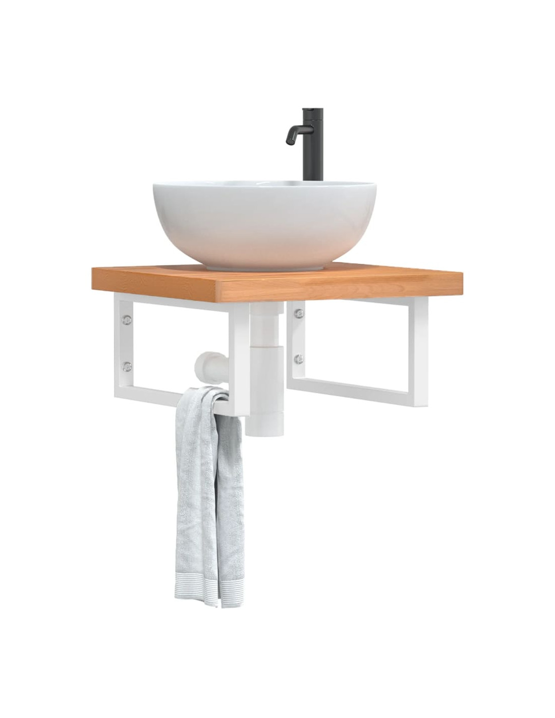 Il ripiano per lavabo a parete si fissa saldamente alla parete, offrendo una soluzione elegante e salvaspazio per il vostro bagno. Robusto e duraturo: Questo ripiano per lavabo è abbinato con una struttura in acciaio e un piano in legno massello di faggio, che lo rendono robusto, stabile e duraturo. Salvaspazio: il ripiano lavabo sospeso ha ampio spazio per riporre creme e piccoli oggetti. Grazie alla forma rettangolare, potete appendere asciugamani o altro sul supporto per risparmiare spazio. Facile da usare: il piano di lavoro non è forato per consentire il montaggio del lavabo a sinistra, a destra o al centro, a seconda delle esigenze della stanza. Grazie ai fori predisposti nel supporto, può essere facilmente assemblato con il piano e montato a parete. Ampie applicazioni: grazie al suo design moderno, offre spazio aggiuntivo per vari tipi di bagni. Buono a sapersi:Le viti non sono incluse, è possibile acquistarle separatamente in base alle informazioni fornite di seguito. Fissaggio a parete: 2 viti di espansione M8 per staffa Piano in legno: 2 viti M5x18 (T=2) o 2 viti M5x20 (T=2,5/4cm) per staffa