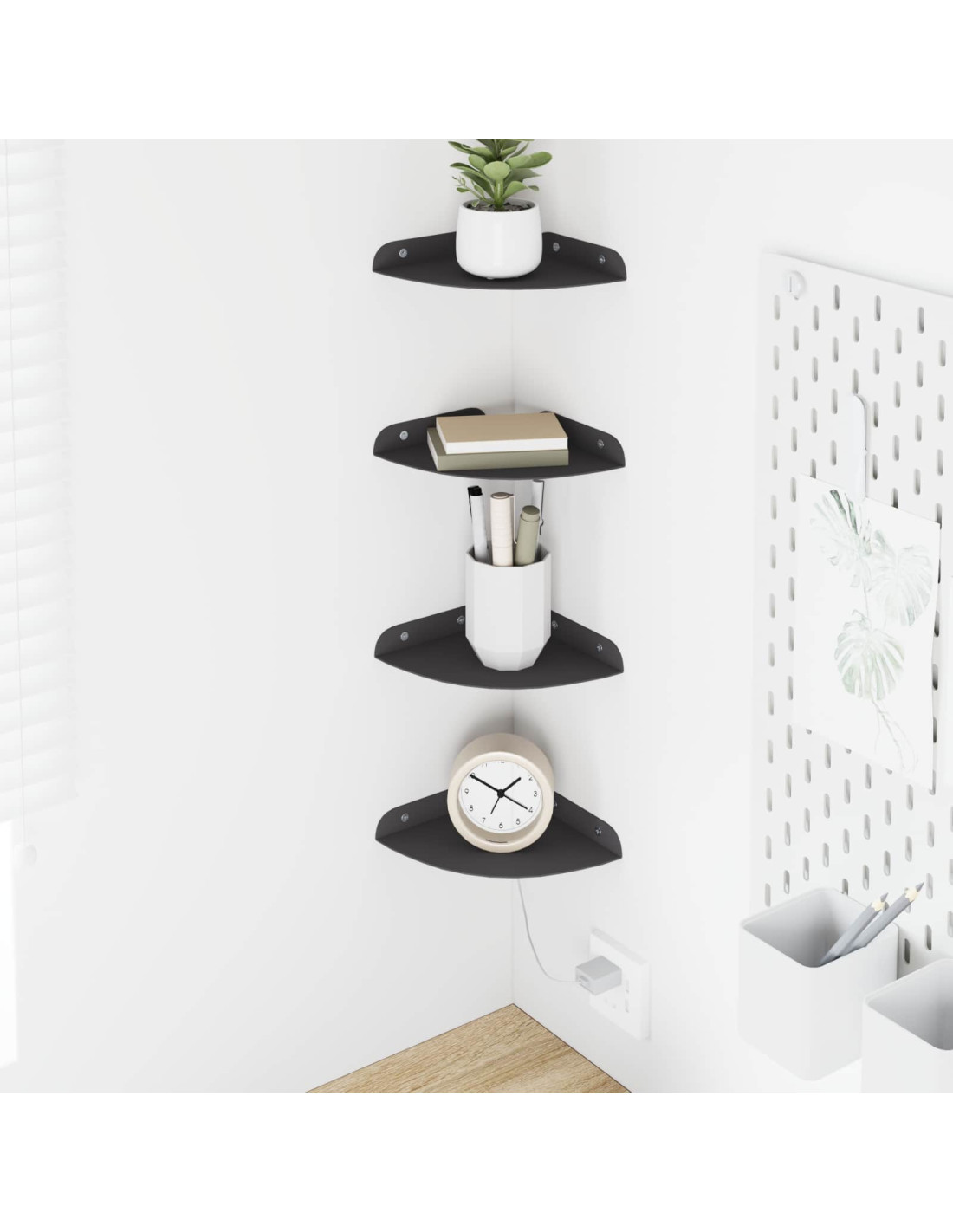 Questa mensola galleggiante in acciaio è un mix perfetto di stile moderno e praticità. Progettata con un design a quarto rotondo, è l'ideale per chi cerca un tocco minimalista senza perdere in utilità. Montata in soggiorni, cucine o bagni, migliora l'aspetto di qualsiasi spazio e offre un'ottima soluzione di stoccaggio. Materiale eccezionale: Questa mensola in acciaio di alta qualità supporta una varietà di oggetti senza piegarsi. Grazie alla sua robustezza, dura a lungo e la finitura liscia aggiunge un tocco elegante, rendendola adatta a vari stili decorativi. Versatilità nel montaggio: Montabile a parete o in angolo, sfrutta al meglio gli spazi non utilizzati, perfetta per appartamenti o stanze piccole. Tieniti lontano dal disordine sollevando gli oggetti dal pavimento e adattandosi a diverse aree della casa. Design funzionale: I bordi rialzati della mensola impediscono che gli oggetti scivolino, un particolare che mostra la cura nel design. Si integra perfettamente negli interni moderni e offre spazio extra per decorazioni, libri o utensili da cucina. Cura e manutenzione: Facile da mantenere, questa mensola richiede solo una pulizia occasionale con un panno umido. È una soluzione senza stress per gli stili di vita frenetici, mantenendo il suo aspetto elegante con facilità. Requisiti di assemblaggio: L'assemblaggio richiede solo un cacciavite e un martello. È consigliabile avere due persone per una installazione sicura. Le istruzioni semplificate rendono facile l'assemblaggio, un progetto fattibile per gli appassionati di fai-da-te.