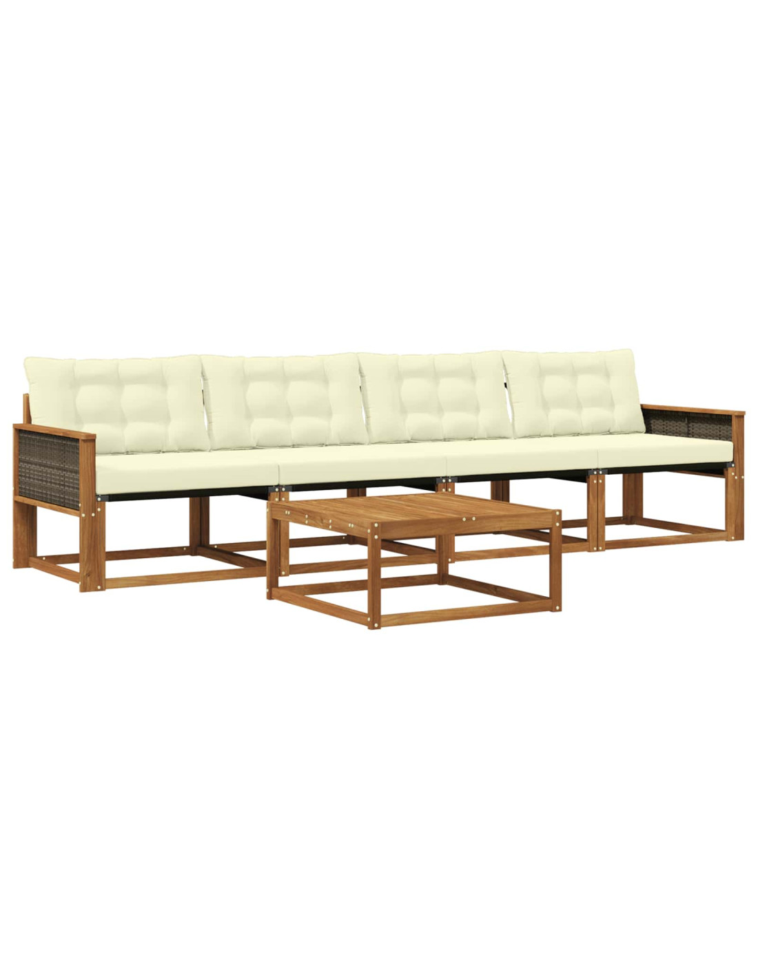 Il set di mobili da esterno combina stile e funzionalità, diventando il fulcro di ogni giardino o terrazza. Con un design moderno e linee pulite, aggiunge tocco di eleganza e invita al relax nelle occorrenze sociali. Realizzato completamente in legno massello di acacia, il set è durevole e offre un aspetto che dura nel tempo, il che lo rende la scelta perfetta per chi cerca praticità e design raffinato nei mobili da esterno. Legno massello di acacia resistente: Questo set è fatto di legno massello di acacia, noto per la sua resistenza. La costruzione solida assicura stabilità e durabilità, mentre il caldo tono naturale arricchisce ogni giardino o terrazza. Design resistente agli agenti atmosferici: Offre una superficie verniciata per una protezione extra contro sole e leggera pioggia. La finitura lucida mantiene sia l'aspetto che la funzionalità, garantendo resistenza nel tempo per il tuo giardino, terrazza o cortile. Componenti ben progettati: Ogni pezzo, dai braccioli agli schienali, è pensato per comfort e stile. Le caratteristiche di supporto aumentano il comfort, mentre il design uniforme crea un insieme visivamente armonioso, adatto a ogni occasione all'aperto. Comfort e versatilità: Il design modulare permette diverse configurazioni per adattarsi a vari spazi e necessità. È ideale per rilassarsi, incontri sociali o leggere in tranquillità, integrandosi perfettamente in qualsiasi ambiente esterno e massimizzando comfort e usabilità. Facile cura e manutenzione: Per mantenerlo in ottime condizioni, basta pulire la superficie con un panno umido e evitare detergenti forti. Una manutenzione regolare aiuta a preservare l'aspetto e allunga la vita del mobilio.