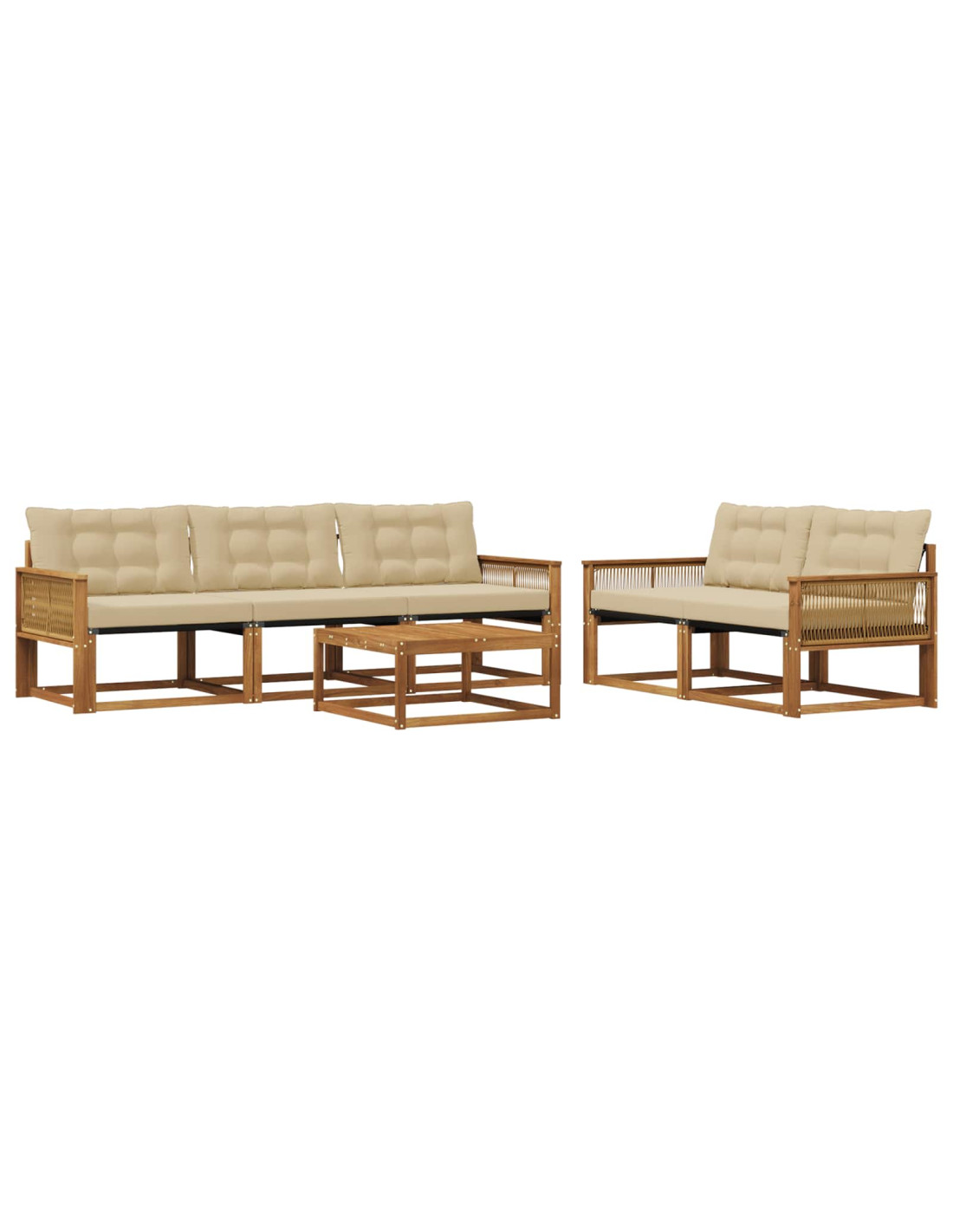 Il set di mobili da esterno unisce stile e funzionalità, diventando il punto focale di qualsiasi giardino o terrazza. Con il suo design moderno, linee pulite e dettagli semplici, aggiunge un tocco elegante mentre invita al relax e ai momenti in compagnia. Realizzato in legno massello di acacia, è robusto e bello, perfetto per chi cerca un mix di praticità e raffinatezza nei mobili esterni. Legno massello di acacia durevole: Fatti colpire dalla robustezza del legno massello di acacia di questo set. Resiste bene alle intemperie e offre un supporto stabilissimo, mentre il suo colore caldo si integra bene con ogni giardino e terrazza. Design resistente alle intemperie: Questo mobile da esterno ha una finitura che lo protegge da sole, pioggia e altri eventi atmosferici. Così mantiene il suo aspetto e la sua funzionalità nel tempo. Componenti e design: Ogni pezzo è pensato per garantire stile e funzionamento. I dettagli come il poggiatesta e i braccioli offrono comfort extra, mentre il design armonioso rende il tutto perfetto per ogni occasione all’aperto. Comfort e versatilità: Con il suo design modulare, puoi modificarlo facilmente per adattarsi a ogni spazio. Ideale per un momento di relax, eventi sociali o anche una lettura tranquilla, si inserisce perfettamente in qualsiasi ambiente esterno, aumentando comfort e usabilità. Cura e manutenzione facili: Per tenere i mobili al meglio, basta pulirli con un panno umido e non usare detergenti aggressivi. Un po'di manutenzione regolare aiuta a mantenere il loro aspetto e a farli durare nel tempo.