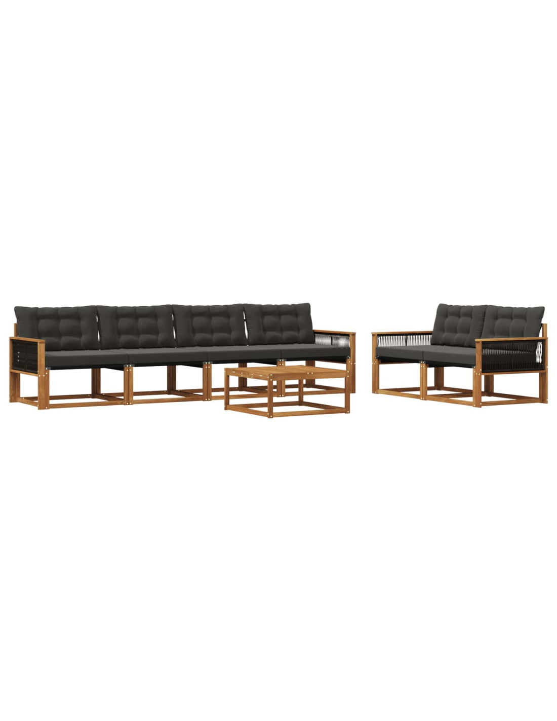 Il set di mobili da esterno unisce stile e funzionalità, diventando il pezzo principale per qualsiasi giardino o terrazza. Il design moderno, con linee pulite e minimalismo, offre eleganza mentre favorisce il relax e i momenti sociali all'aperto. Costruito in legno massello di acacia, assicura durata e un aspetto che dura nel tempo, rendendolo ideale per chi cerca sia praticità che belle