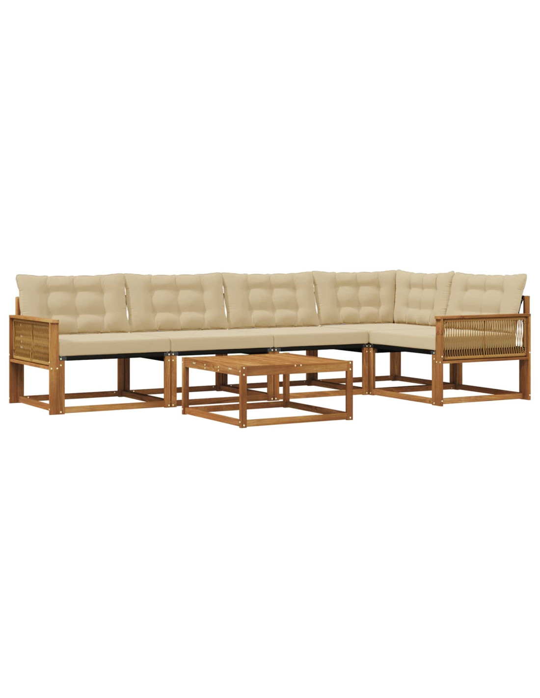 Questo set da esterno combina stile e funzionalità, ed è un vero colpo d'occhio per qualsiasi giardino o terrazzo. Il design moderno, con linee pulite e dettagli minimi, aggiunge eleganza e favorisce il relax all'aperto e i ritrovi sociali. Realizzato in legno massello di acacia, garantisce durata e un look che dura nel tempo, perfetto per chi cerca praticità e design raffinato nei mobi