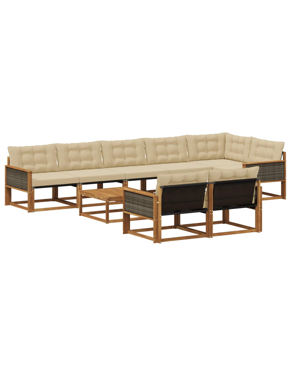 Set di divani da esterno con cuscino 9 pcs Naturale e Beige