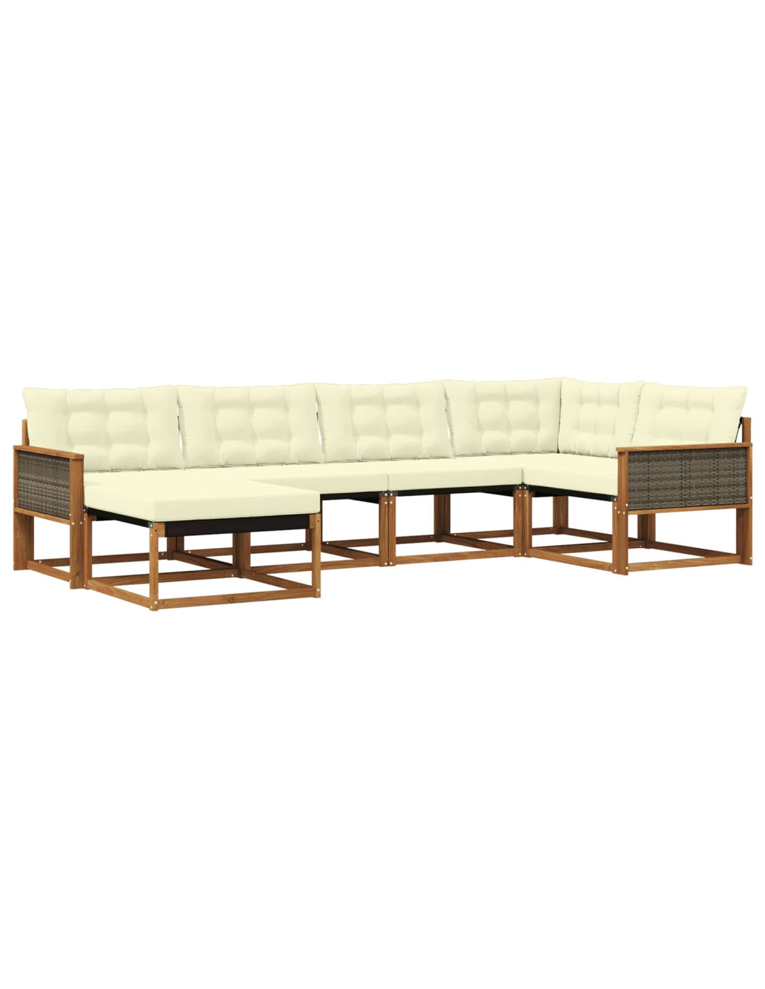 Questo Set di Divani da Giardino Resistente unisce comfort e stile, pensato per migliorare il tuo relax all'aperto. Con un design moderno, rende il tuo giardino o terrazza accoglienti ed eleganti. Il legno massello di acacia gli dà un tocco senza tempo, perfetto per chi ama il calore e il carattere del legno naturale. Che tu stia ospitando amici o godendoti un momento tranquillo, questo set offre stile e praticità, sopportando le intemperie e creando un'atmosfera accogliente. Texture in legno naturale Il telaio in legno massello di acacia aggiunge un tocco naturale e armonioso al tuo giardino o terrazza. Questa base robusta garantisce solidità e un tocco elegante al tuo spazio esterno, facendo di ogni incontro un'esperienza piacevole. Tessuto resistente allo sbiadimento Il Textilene utilizzato per sedile e schienale è ideale per resistere al sole e mantiene colori vivaci nel tempo. Puoi contare su questo materiale di qualità per mantenere il suo fascino senza preoccupazioni di sbiadimento. Schienale di supporto Creato per coccolarti, lo schienale offre supporto alla tua schiena durante lunghe ore di relax. Il design è pensato per essere ergonomico, assicurando che ogni momento trascorso qui sia davvero rigenerante. Bracciolo pratico I braccioli, sempre in legno massello di acacia, non solo hanno un bel look ma sono anche super funzionali. Perfetti per rilassare le braccia o tenere un drink, rendono l'intera esperienza di seduta ancora più comoda. Pulizia facile Lavare i cuscini e le superfici in Textilene è un gioco da ragazzi, grazie ai materiali che respingono lo sporco. Questo rende il tuo set sempre bello e fresco senza troppa fatica.