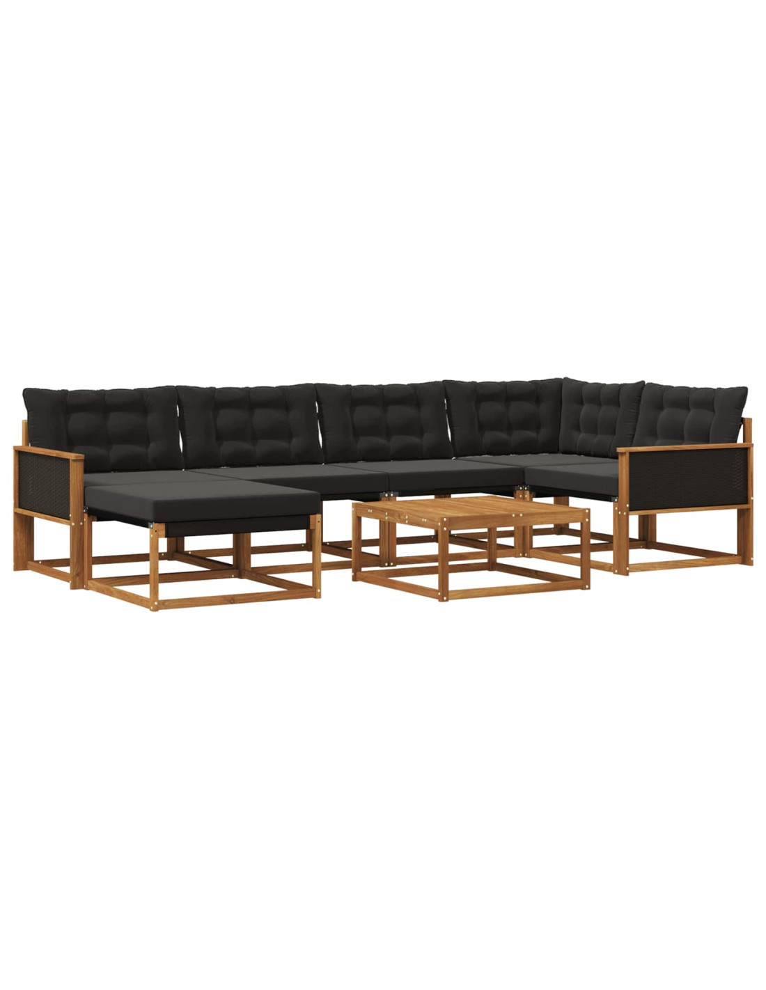 Questo set di divani da esterno arricchisce qualsiasi giardino o terrazza con stile e durata. Progettato per uso all'aperto, offre comodità a più persone, diventando il centro di qualsiasi incontro. Legno massello di acacia: Non solo aggiunge bellezza al set, ma garantisce anche resistenza nel tempo, resistendo a diverse condizioni climatiche. Le tonalità naturali del legno si mescolano perfettamente con gli spazio naturali, rendendolo un'aggiunta senza tempo al tuo giardino o terrazza. Ideale per qualsiasi evento, dal divertimento a momenti di relax. Componenti integrati: Il divano ha braccioli robusti e una struttura resistente, tutti realizzati in legno massello di acacia. Il materiale textilene e i cuscini imbottiti offrono comfort duraturo, mentre i cuscini del sedile rimovibili con cerniera consentono una manutenzione facile e un comfort personalizzato. Caratteristiche funzionali: Progettato per affrontare le intemperie, questo set è resistente allo sbiadimento e facile da pulire, assicurando che resti sempre fresco. Lo schienale supporta una postura corretta durante il relax prolungato, mentre i braccioli pratici offrono comodità. Usi versatili: Perfetto per il giardino, questo divano si adatta a qualsiasi contesto esterno. Perfetto per accogliere ospiti, organizzare pomeriggi di tè o goderti un momento rilassante con un libro. Il design si integra bene in spazi moderni, rendendolo un'ottima scelta per relax all'aperto. Manutenzione semplice: Per tenere il set in ottime condizioni, basta pulirlo con un panno umido. Questa routine semplice mantiene il tuo set fresco e accogliente in qualsiasi stagione, proteggendo il tuo investimento in spazi esterni senza fatica.