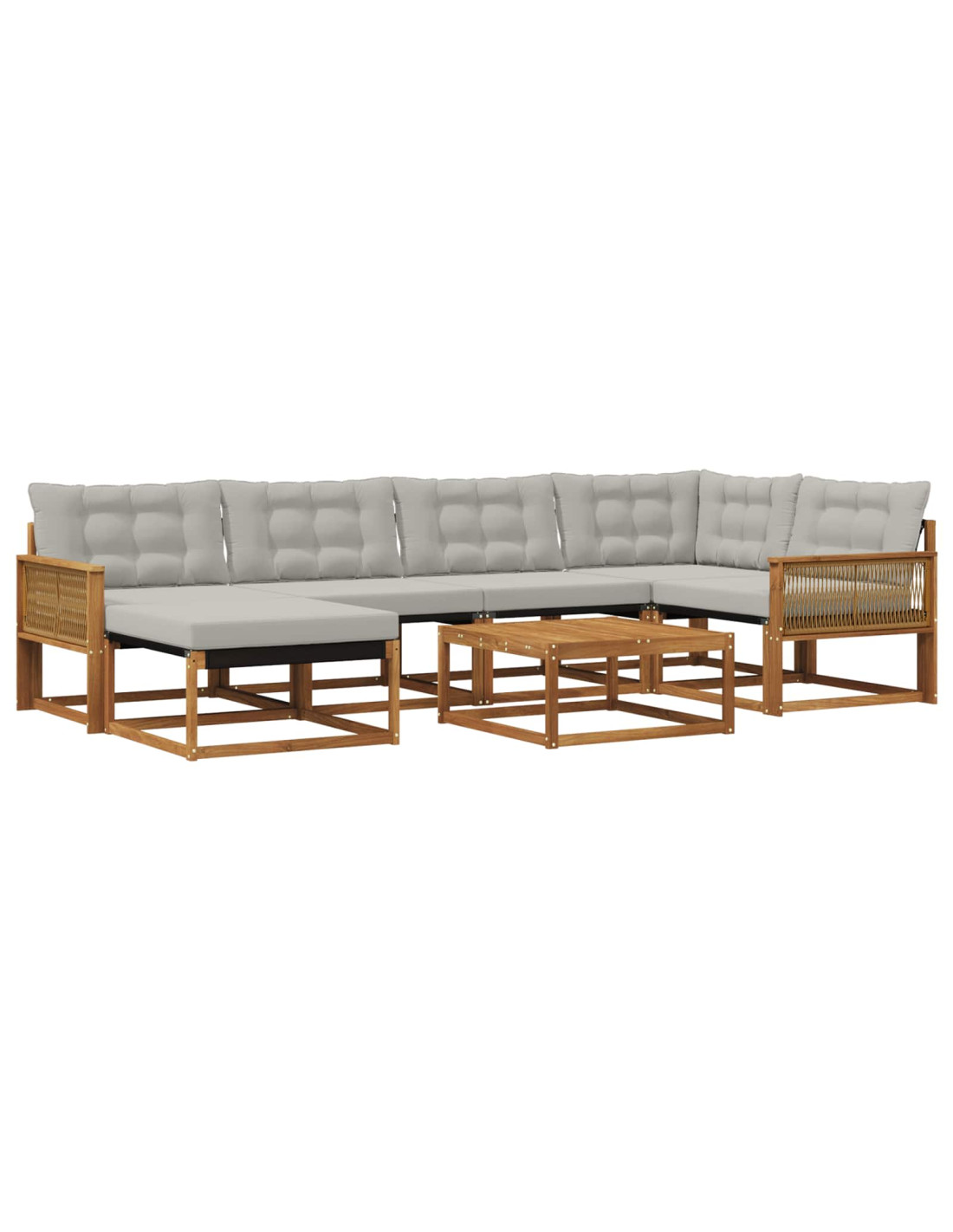 Questo set di divani da esterno arricchisce qualsiasi giardino o terrazza con stile e durata. Progettato per uso all'aperto, offre comodità a più persone, diventando il centro di qualsiasi incontro. Legno massello di acacia: Non solo aggiunge bellezza al set, ma garantisce anche resistenza nel tempo, resistendo a diverse condizioni climatiche. Le tonalità naturali del legno si mescolano perfettamente con gli spazio naturali, rendendolo un'aggiunta senza tempo al tuo giardino o terrazza. Ideale per qualsiasi evento, dal divertimento a momenti di relax. Componenti integrati: Il divano ha braccioli robusti e una struttura resistente, tutti realizzati in legno massello di acacia. Il materiale textilene e i cuscini imbottiti offrono comfort duraturo, mentre i cuscini del sedile rimovibili con cerniera consentono una manutenzione facile e un comfort personalizzato. Caratteristiche funzionali: Progettato per affrontare le intemperie, questo set è resistente allo sbiadimento e facile da pulire, assicurando che resti sempre fresco. Lo schienale supporta una postura corretta durante il relax prolungato, mentre i braccioli pratici offrono comodità. Usi versatili: Perfetto per il giardino, questo divano si adatta a qualsiasi contesto esterno. Perfetto per accogliere ospiti, organizzare pomeriggi di tè o goderti un momento rilassante con un libro. Il design si integra bene in spazi moderni, rendendolo un'ottima scelta per relax all'aperto. Manutenzione semplice: Per tenere il set in ottime condizioni, basta pulirlo con un panno umido. Questa routine semplice mantiene il tuo set fresco e accogliente in qualsiasi stagione, proteggendo il tuo investimento in spazi esterni senza fatica.