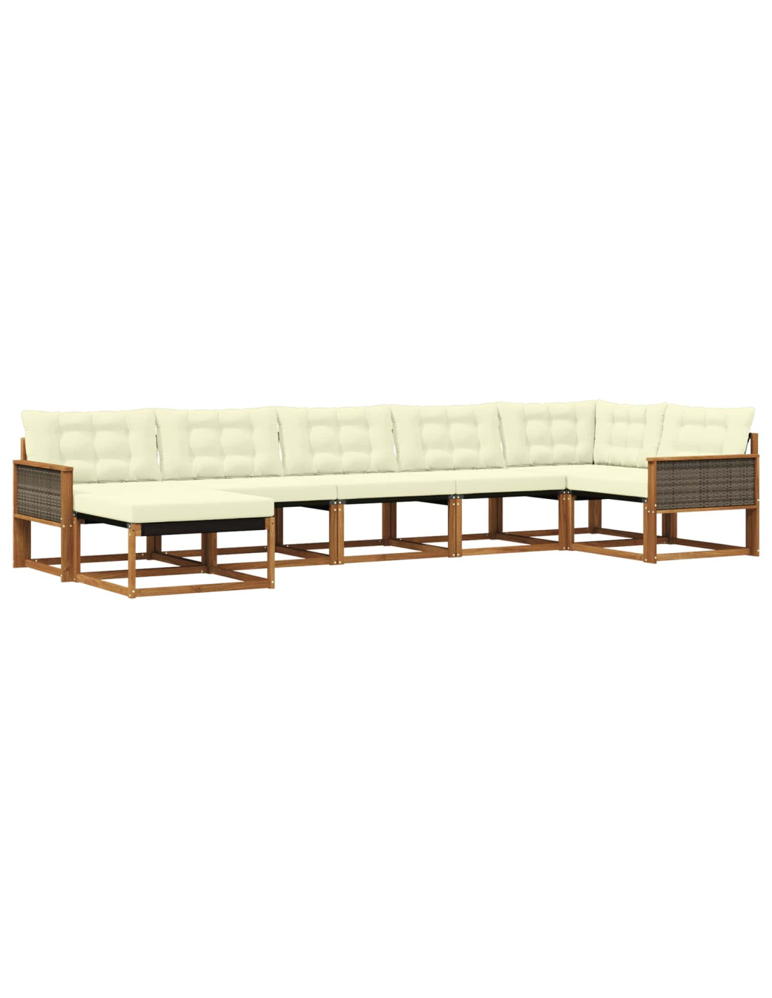 Questo set di divani per esterni è una meraviglia moderna che trasforma il tuo giardino o terrazza in un rifugio alla moda. Elegante e sofisticato, si adatta facilmente agli spazi esterni contemporanei, perfetto per rilassarsi e divertirsi. Materiali: Realizzato in legno massello di acacia per i braccioli e il telaio, questo set dà un tocco naturale e terra. Il legno solido garantisce stabilità e un tocco di eleganza, con anni di bellezza e funzionalità. Componenti inclusi: Il set di divani include cuscini per esterni rimovibili, imbottiti con schiuma, per garantirti comfort mentre sei seduto. Un supporto in Textilene offre una seduta comoda, mentre i braccioli pratici aumentano l'usabilità per il relax. Funzionalità / Design: Con caratteristiche resistenti allo sbiadimento, il set mantiene il suo aspetto vivace anche con l'esposizione al sole. Progettato con una texture legnosa naturale, offre superfici pratiche e facili da pulire per una manutenzione senza complicazioni. Usi consigliati: Ottimo per giardini e terrazze, questo set offre una soluzione versatile per feste all'aperto, relax e per intrattenere gli ospiti. Il design moderno si adatta a diversi contesti, migliorando sia gli spazi residenziali che commerciali. Manutenzione e cura: Prendersi cura di questo set è facile: basta passare un panno umido per togliere polvere o macchie. I cuscini hanno chiusure a zip per facilitarti nella rimozione e pulizia, per mantenere tutto fresco e igienico.