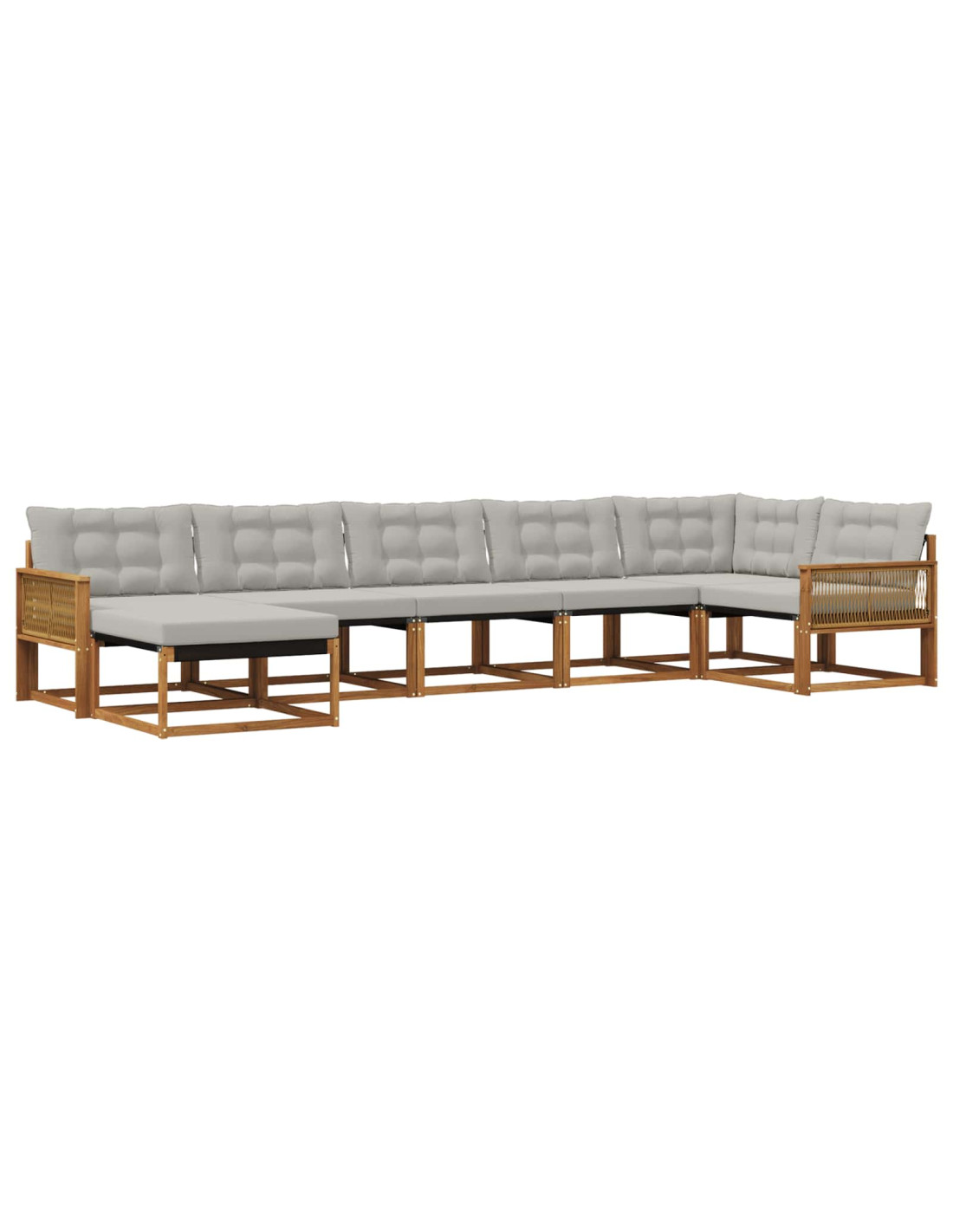 Questo set di divani per esterni è una meraviglia moderna che trasforma il tuo giardino o terrazza in un rifugio alla moda. Elegante e sofisticato, si adatta facilmente agli spazi esterni contemporanei, perfetto per rilassarsi e divertirsi. Materiali: Realizzato in legno massello di acacia per i braccioli e il telaio, questo set dà un tocco naturale e terra. Il legno solido garantisce stabilità e un tocco di eleganza, con anni di bellezza e funzionalità. Componenti inclusi: Il set di divani include cuscini per esterni rimovibili, imbottiti con schiuma, per garantirti comfort mentre sei seduto. Un supporto in Textilene offre una seduta comoda, mentre i braccioli pratici aumentano l'usabilità per il relax. Funzionalità / Design: Con caratteristiche resistenti allo sbiadimento, il set mantiene il suo aspetto vivace anche con l'esposizione al sole. Progettato con una texture legnosa naturale, offre superfici pratiche e facili da pulire per una manutenzione senza complicazioni. Usi consigliati: Ottimo per giardini e terrazze, questo set offre una soluzione versatile per feste all'aperto, relax e per intrattenere gli ospiti. Il design moderno si adatta a diversi contesti, migliorando sia gli spazi residenziali che commerciali. Manutenzione e cura: Prendersi cura di questo set è facile: basta passare un panno umido per togliere polvere o macchie. I cuscini hanno chiusure a zip per facilitarti nella rimozione e pulizia, per mantenere tutto fresco e igienico.
