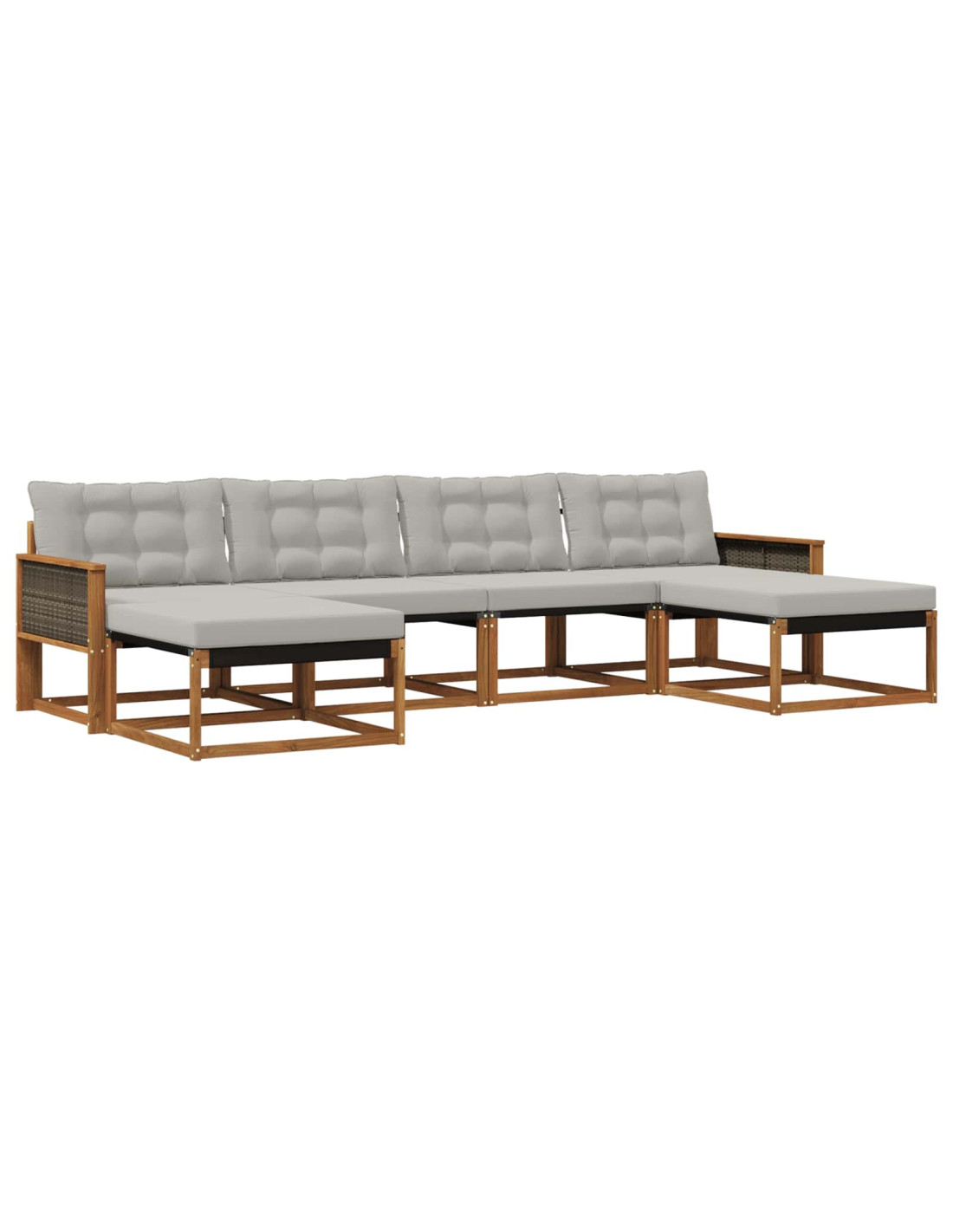 Il set di mobili da esterno unisce stile e funzionalità, diventando un punto focale unico per ogni giardino o terrazza. Il design moderno, con linee pulite e dettagli semplici, aggiunge un tocco di eleganza e favorisce il relax all'aperto e le socializzazioni. Fatto interamente in legno massello di acacia, il set assicura robustezza e un aspetto sempre bello, perfetto per chi cerca praticità e uno stile ricercato nei mobili da esterno. Legno massello di acacia resistente: Questo set è costruito in legno massello di acacia, noto per la sua solidità e resistenza alle intemperie. La struttura robusta offre ottimo supporto e durata, mentre il calore del legno naturale arricchisce qualsiasi giardino o terrazza. Design anti intemperie: La superficie laccata di questo set fornisce uno strato extra di protezione contro sole e pioggia leggera. La finitura lucida preserva l'aspetto e la funzionalità, garantendo una lunga durata per il tuo spazio esterno. Componenti e design: Ogni pezzo, dai braccioli agli schienali, è pensato per coniugare stile e praticità. Le caratteristiche di supporto aumentano il comfort, mentre il design armonioso rende il set adatto a molte occasioni all'aperto. Comfort e adattabilità: Il design modulare consente di configurare il set per vari spazi e esigenze. Perfetto per il relax, incontri o momenti di lettura, si adatta senza problemi a ogni ambiente esterno, offrendo comfort e funzionalità. Facile manutenzione: Per mantenere il mobile in ottime condizioni, puliscilo con un panno umido e evita detergenti aggressivi. La cura regolare mantiene l'aspetto e prolunga la vita utile dei mobili.